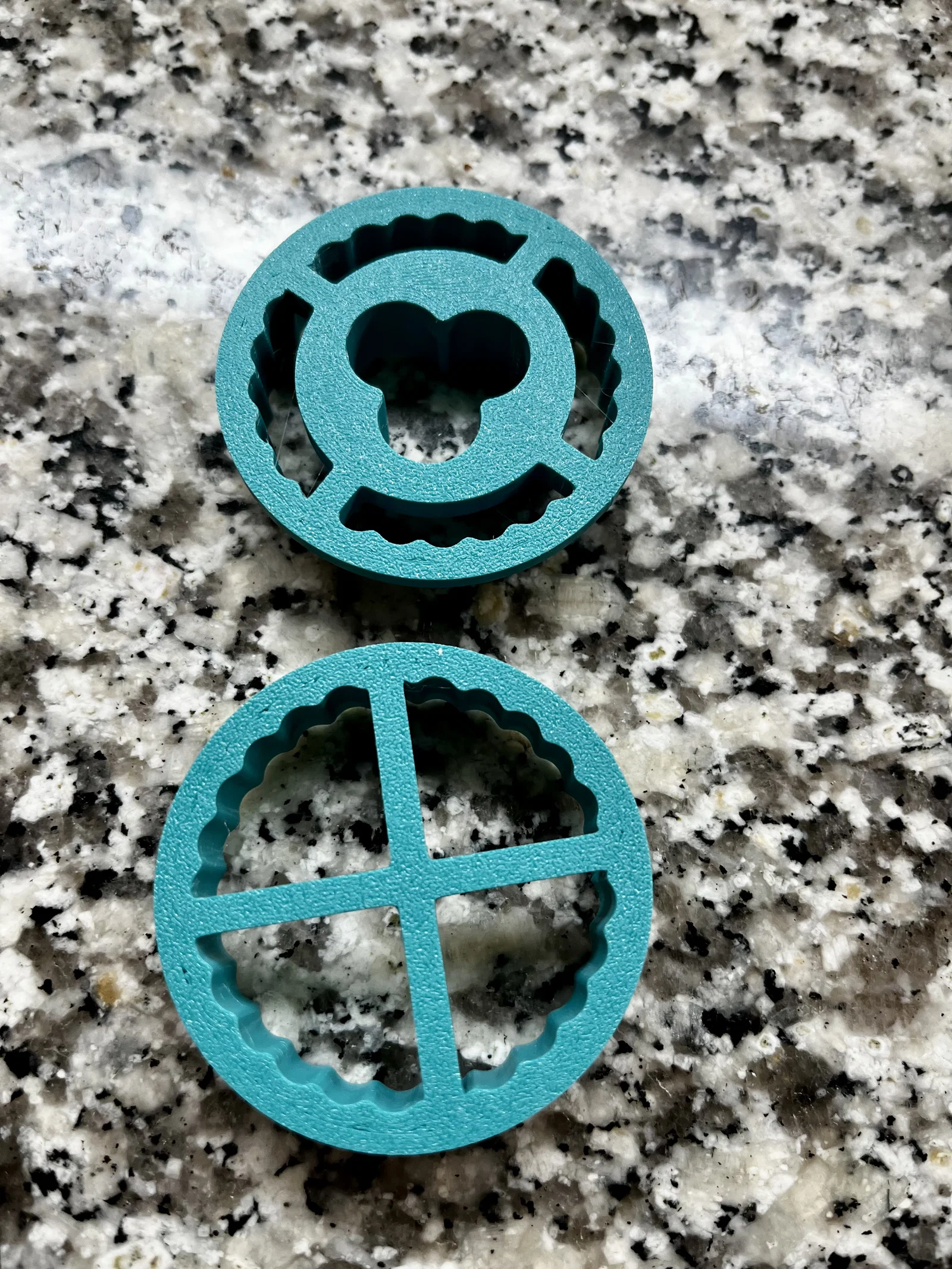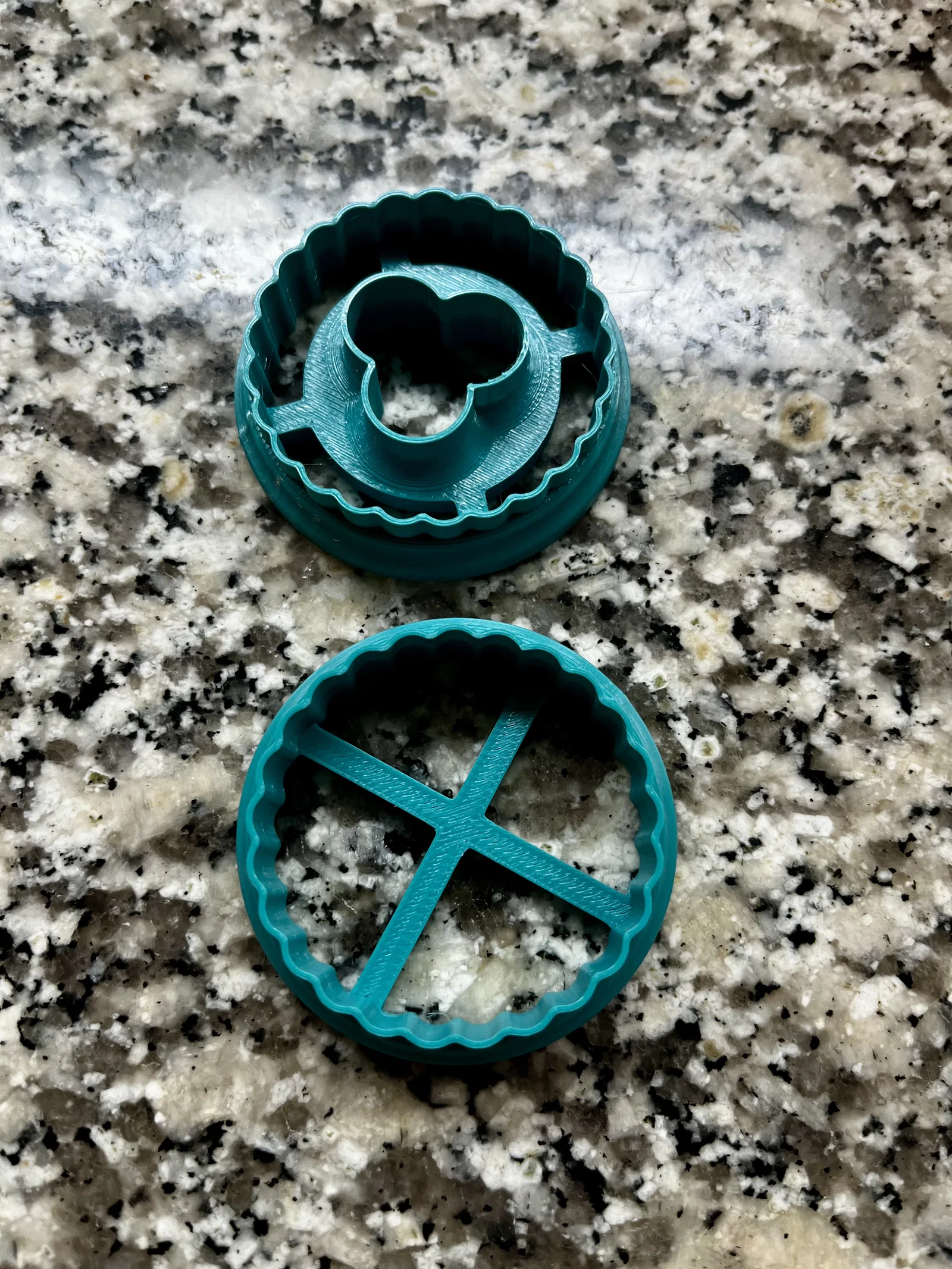 Thiết kế của bộ khuôn này được tối ưu hóa để bạn có thể in ấn nhanh chóng và sử dụng dễ dàng. Bộ sản phẩm bao gồm hai phần tách biệt: một khuôn dùng để cắt tạo hình bánh tròn viền sóng, và một khuôn đi kèm họa tiết rỗng ở trung tâm để bạn đặt phần mứt vào bên trong. Việc sử dụng rất đơn giản, chỉ cần cán bột mỏng vừa phải, dùng khuôn nhấn xuống để có được những miếng bánh đồng nhất, sau đó đem nướng và ghép lại với nhau bằng mứt trái cây hoặc chocolate tùy ý.