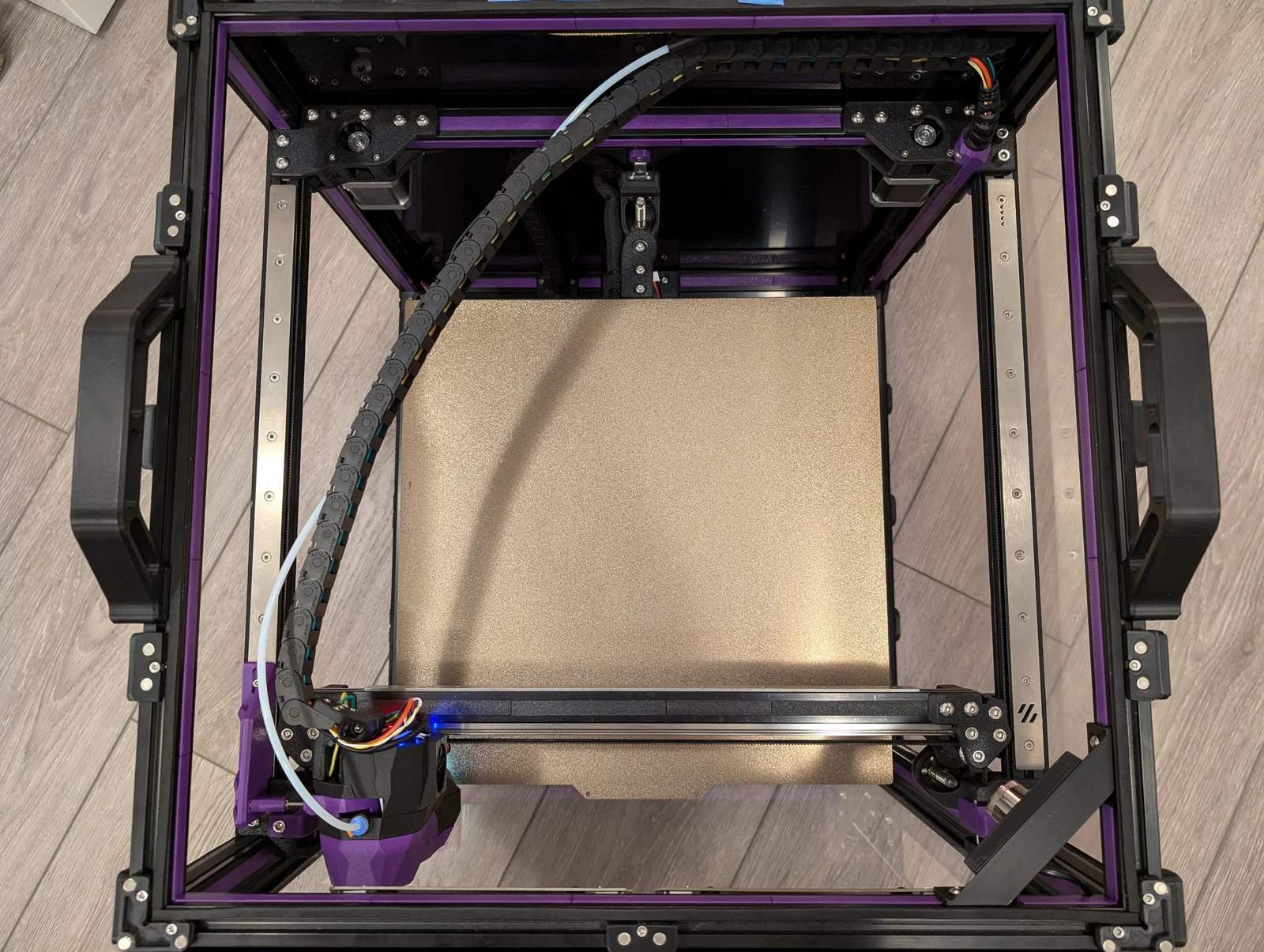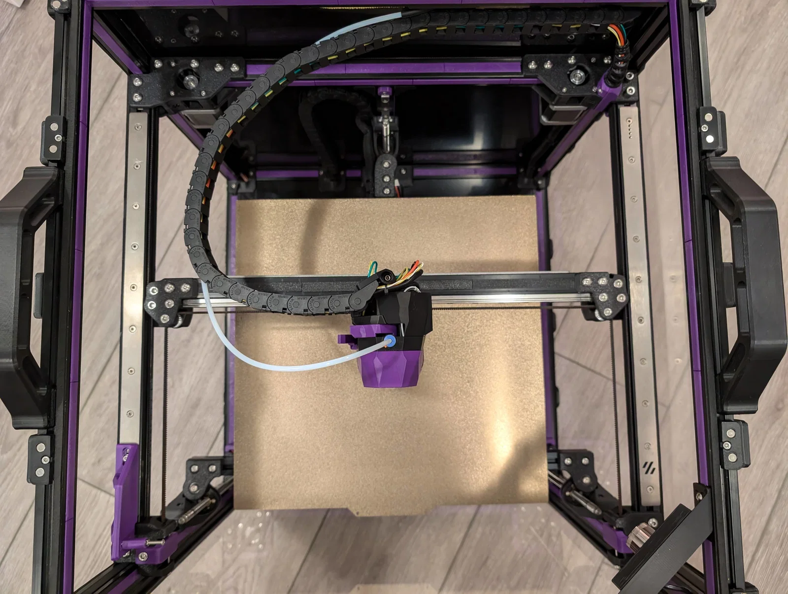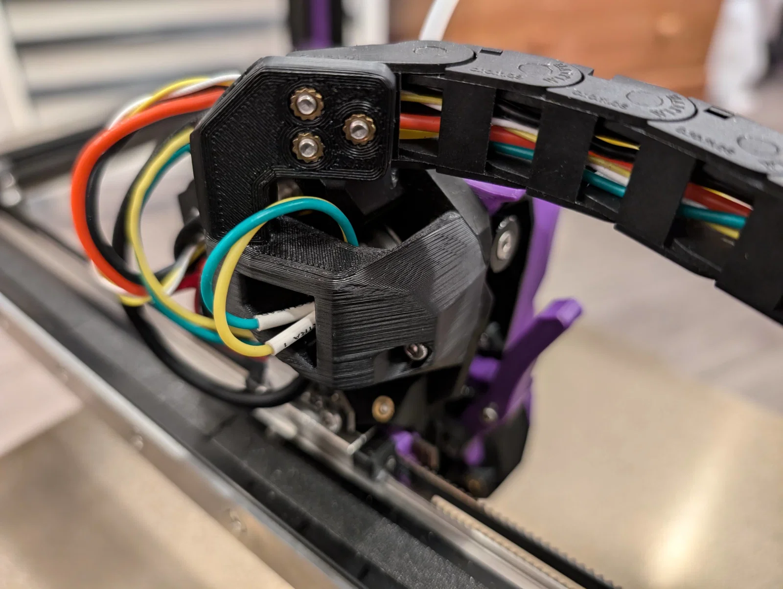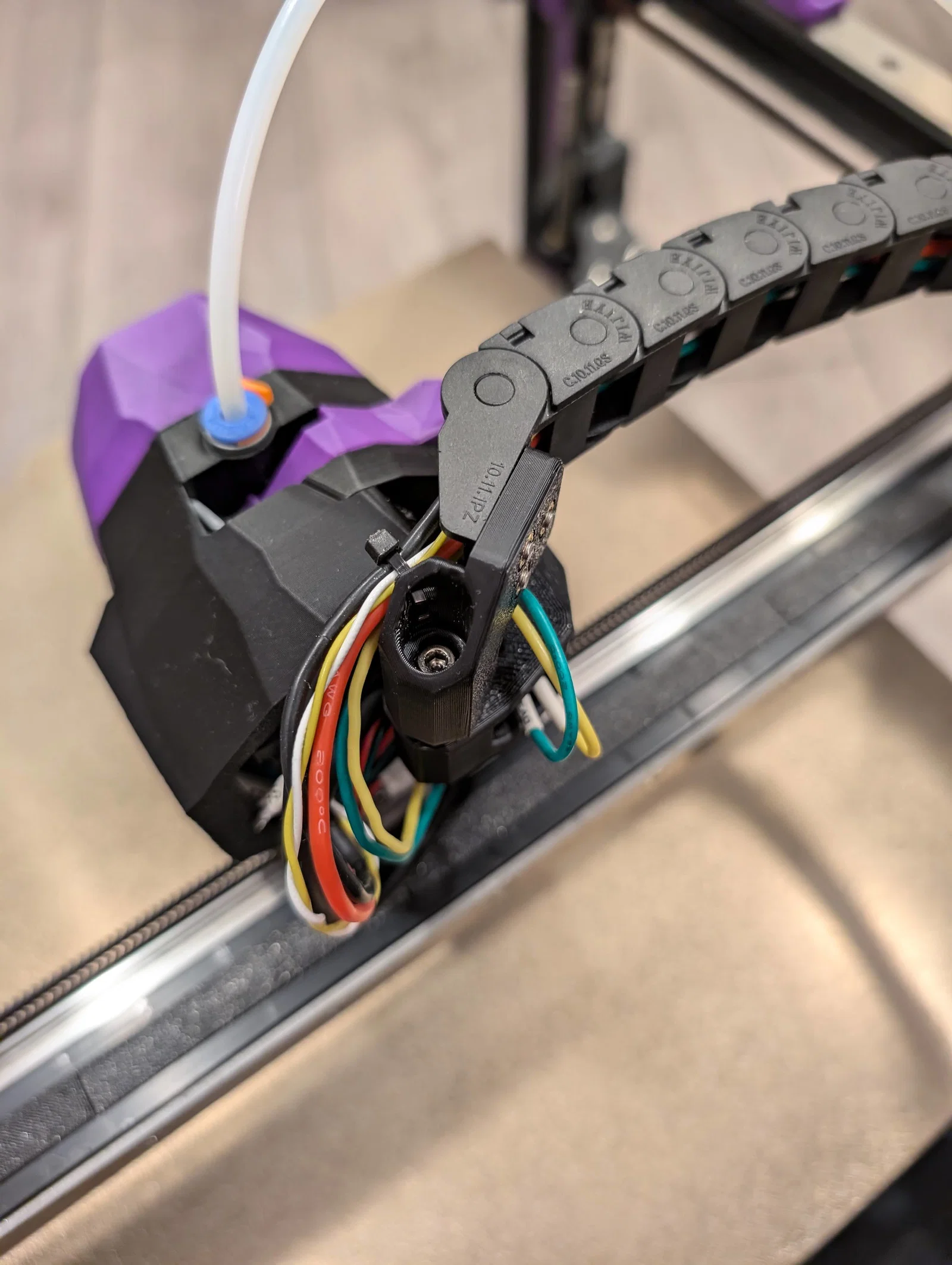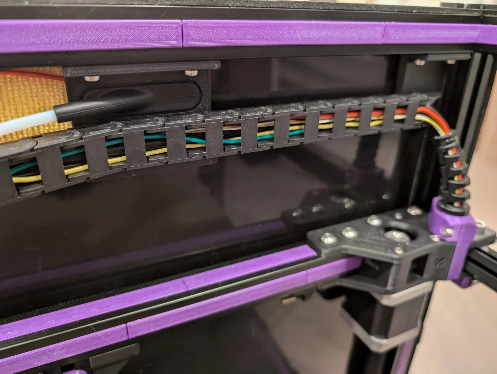 Sau khi chuyển con Trident của mình sang dùng CAN toolhead và tháo bỏ xích cáp X/Y, mình vẫn chưa ưng ý lắm với cách quản lý dây. Khác với Voron 2.4, dùng dây đàn piano không khả thi lắm vì đầu in trên Trident nằm quá sát tấm panel nóc. Mình đã cân nhắc vài giải pháp làm "top-hat" cho Trident, nhưng cuối cùng quyết định chọn phương án tối giản hơn.