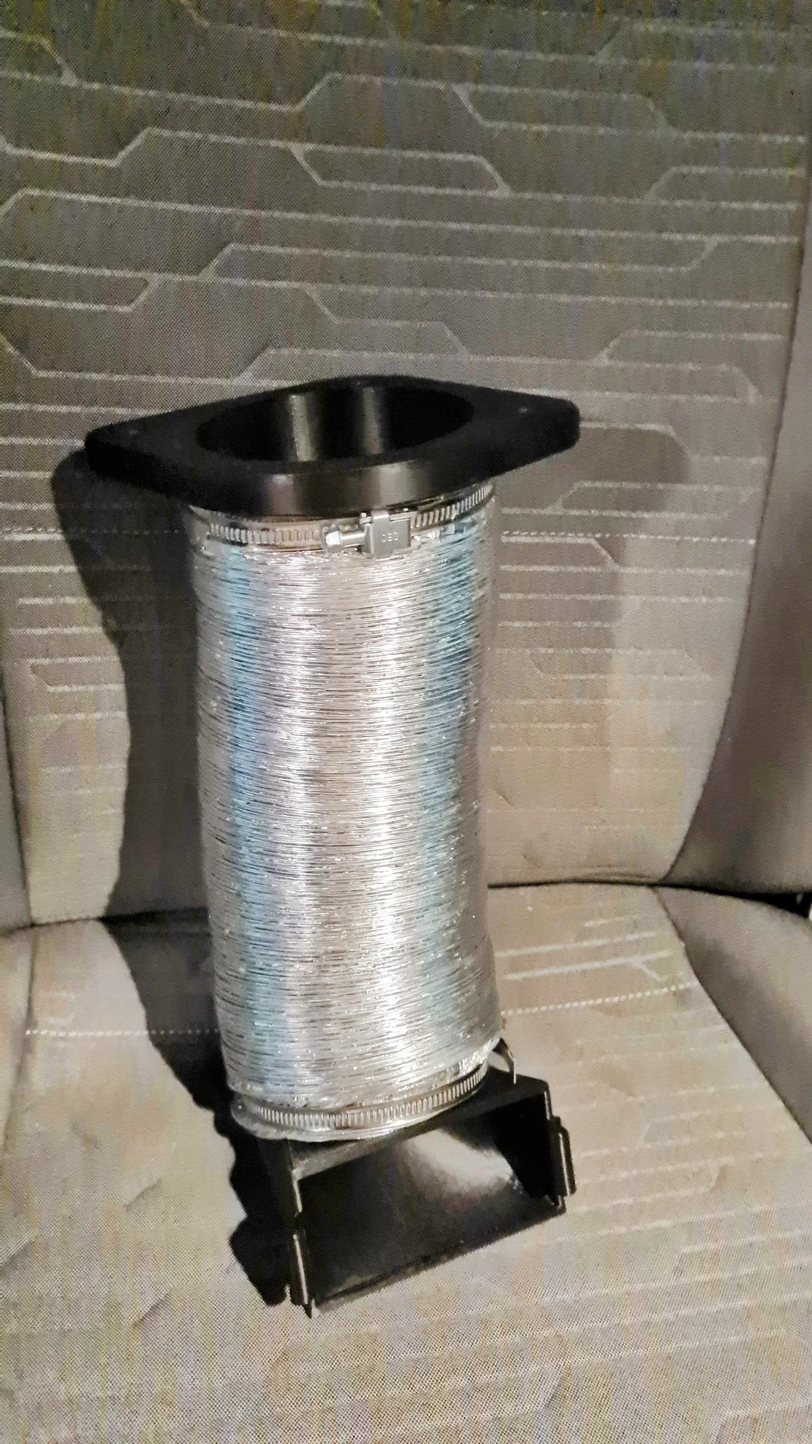 Bạn cần mua một ống nhôm mềm (flexible aluminium pipe) để nối hai phần lại với nhau (cỡ đường kính khoảng 9–10 cm, mình cũng không nhớ chính xác nữa).