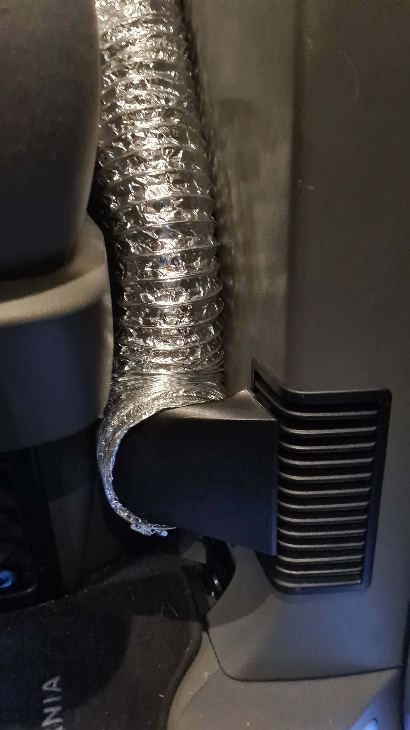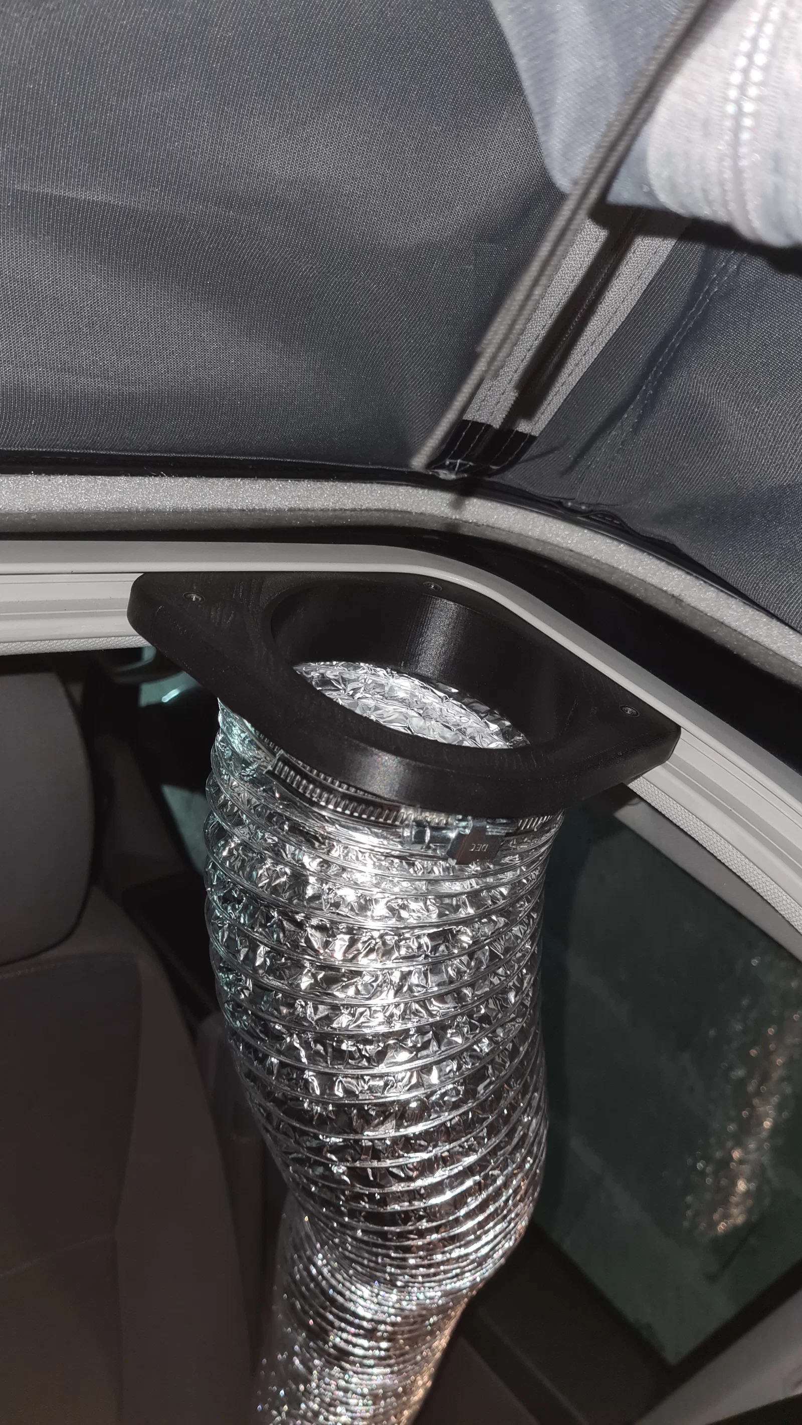 Adapter cho VW California giúp chuyển hướng một phần luồng khí sưởi lên khu vực pop-top để ấm hơn. Cần thêm ống nhôm mềm nối hai đầu; khuyến nghị in ABS/ASA (PETG tạm được, PLA không dùng).
