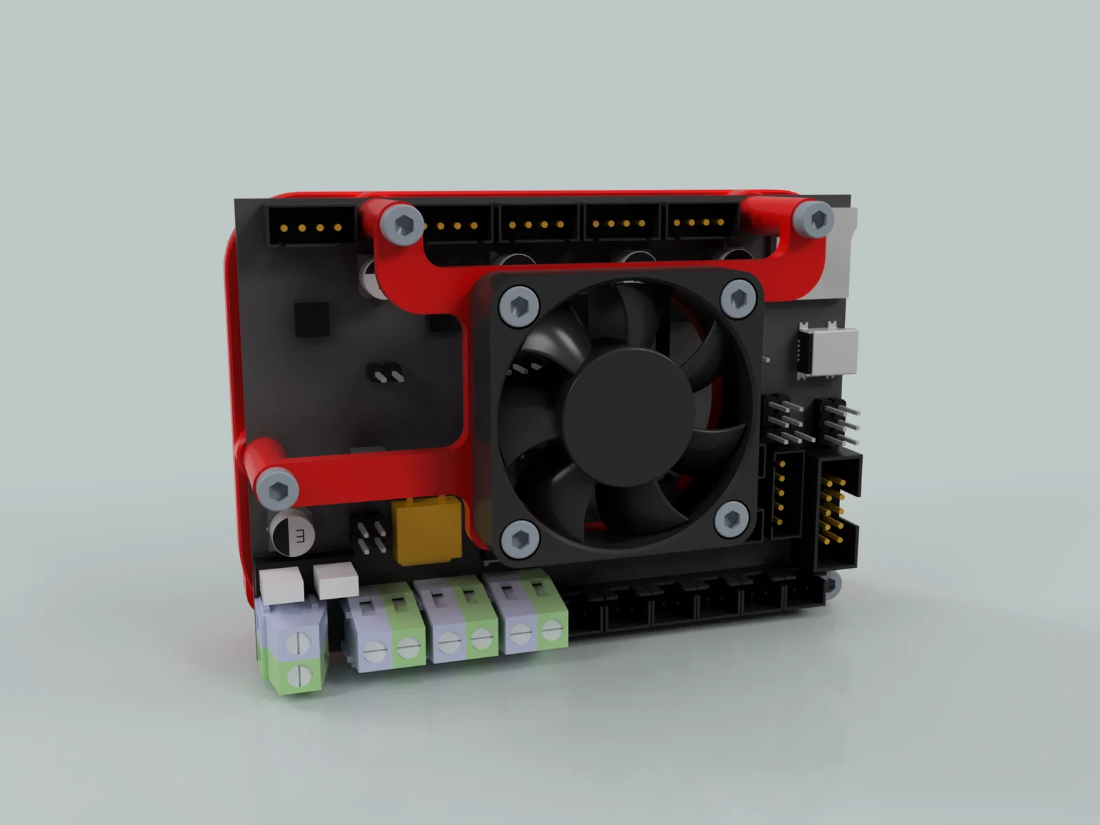 Sản phẩm này mang lại giải pháp làm mát chủ động, giúp luồng khí được điều hướng trực tiếp vào những linh kiện sinh nhiệt cao trên bo mạch. Với thiết kế tối giản nhưng hiệu quả, bạn có thể dễ dàng lắp đặt ngay tại nhà mà không cần chỉnh sửa quá nhiều cấu trúc của máy. Đây là phụ kiện lý tưởng cho những ai thường xuyên in các mẫu lớn, kéo dài hàng chục giờ hoặc nâng cấp máy với các driver công suất cao hơn, cần sự tản nhiệt tốt hơn mức thông thường.