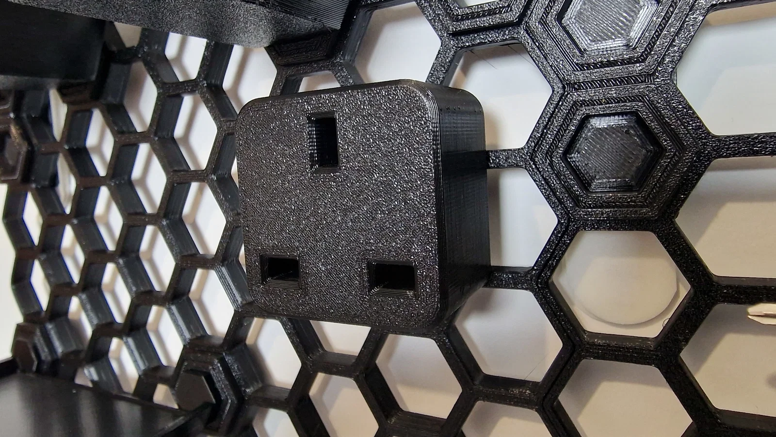 Đây là một món fitting cho Honeycomb Storage Wall, vừa với phích cắm UK chuẩn 3 chấu. Phía sau có sẵn 1 điểm gắn (mounting point) tích hợp, kẹp vào tấm honeycomb chính giống y như file ‘insert-empty.stl’ có trên trang HSW chính. Honeycomb storage wall by RostaP | Download free STL model | Printables.com