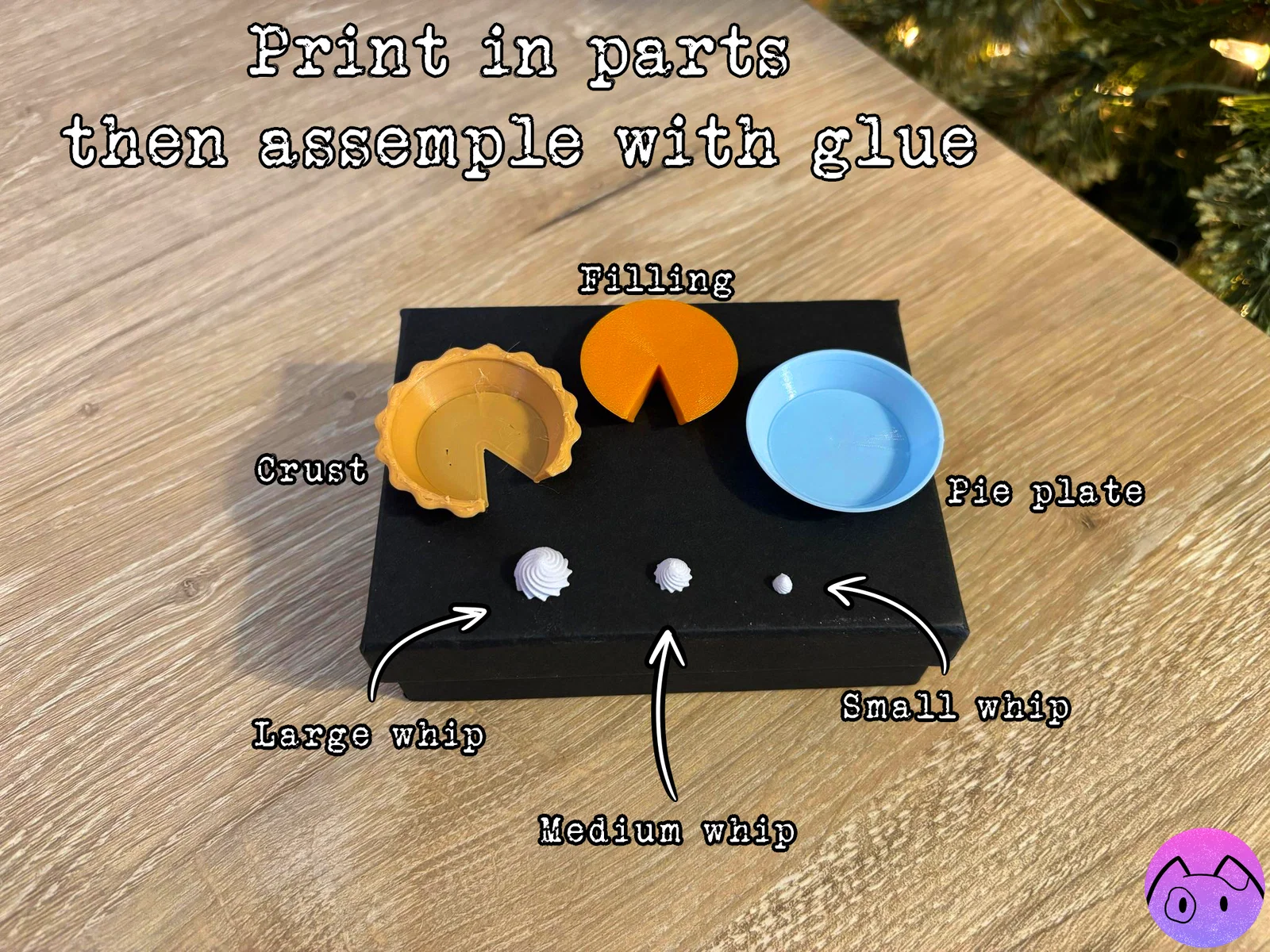 Bộ Miniature Pumpkin Pies gồm nhiều kiểu bánh pumpkin pie mini với các kích cỡ miếng slice khác nhau và phần whipped topping. Scale theo plush doll 20cm; khuyên dùng supports cho pie crust, các phần còn lại không cần.