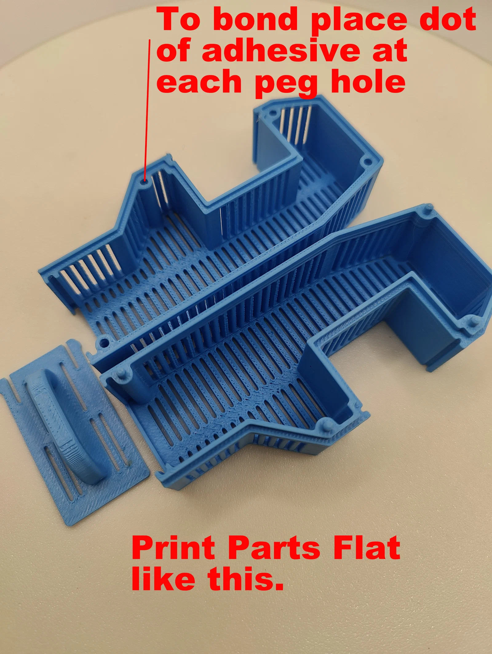 Đây là thiết kế hộp đựng desiccant của mình, vừa khít với Bambu Lab AMS. Mình bắt đầu bằng cách xem những anh em khác xử lý vấn đề này ra sao. Cuối cùng mình quyết định làm phiên bản riêng. Thiết kế này không cần support gì hết và cũng không phải in ở góc “lạ” để bắt đủ chi tiết. Thay vào đó, mình chia thành 2 nửa vỏ (shell) để có thể in phẳng. Lắp ráp rất đơn giản: chỉ cần chấm một giọt Super Glue (Cyanoacrylate Adhesive) vào mỗi lỗ chốt (peg hole) là xong.