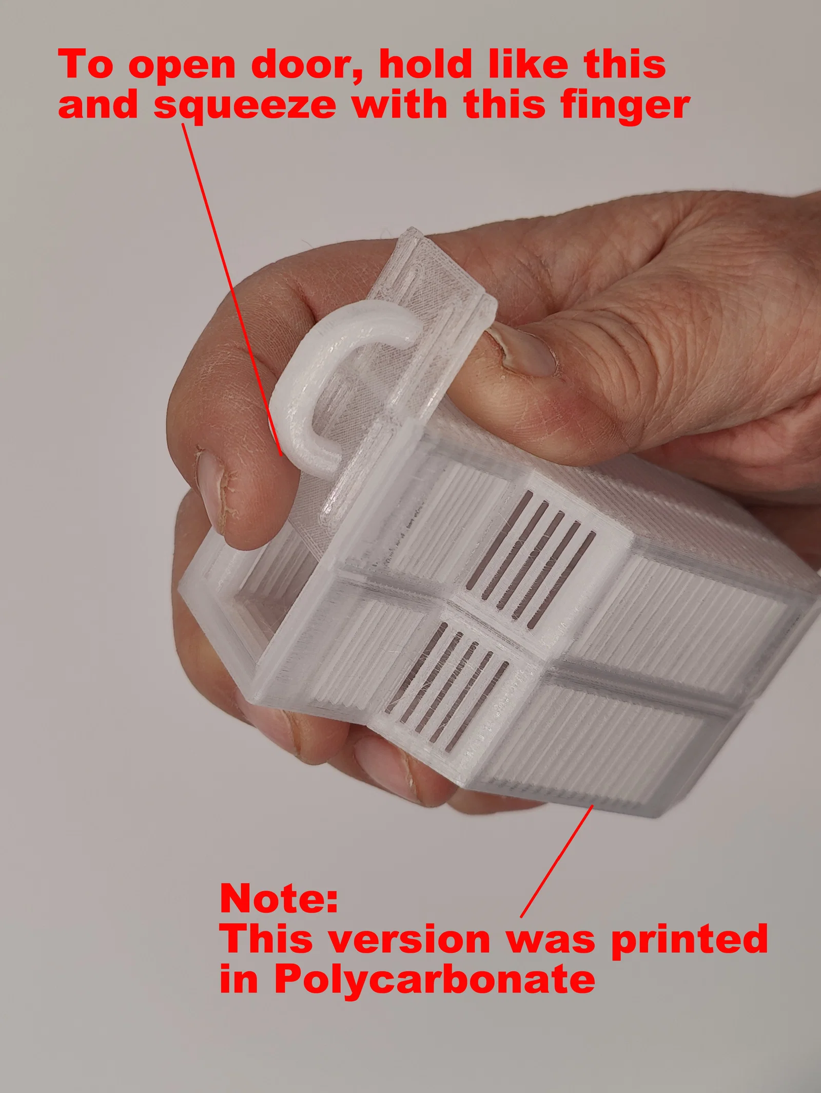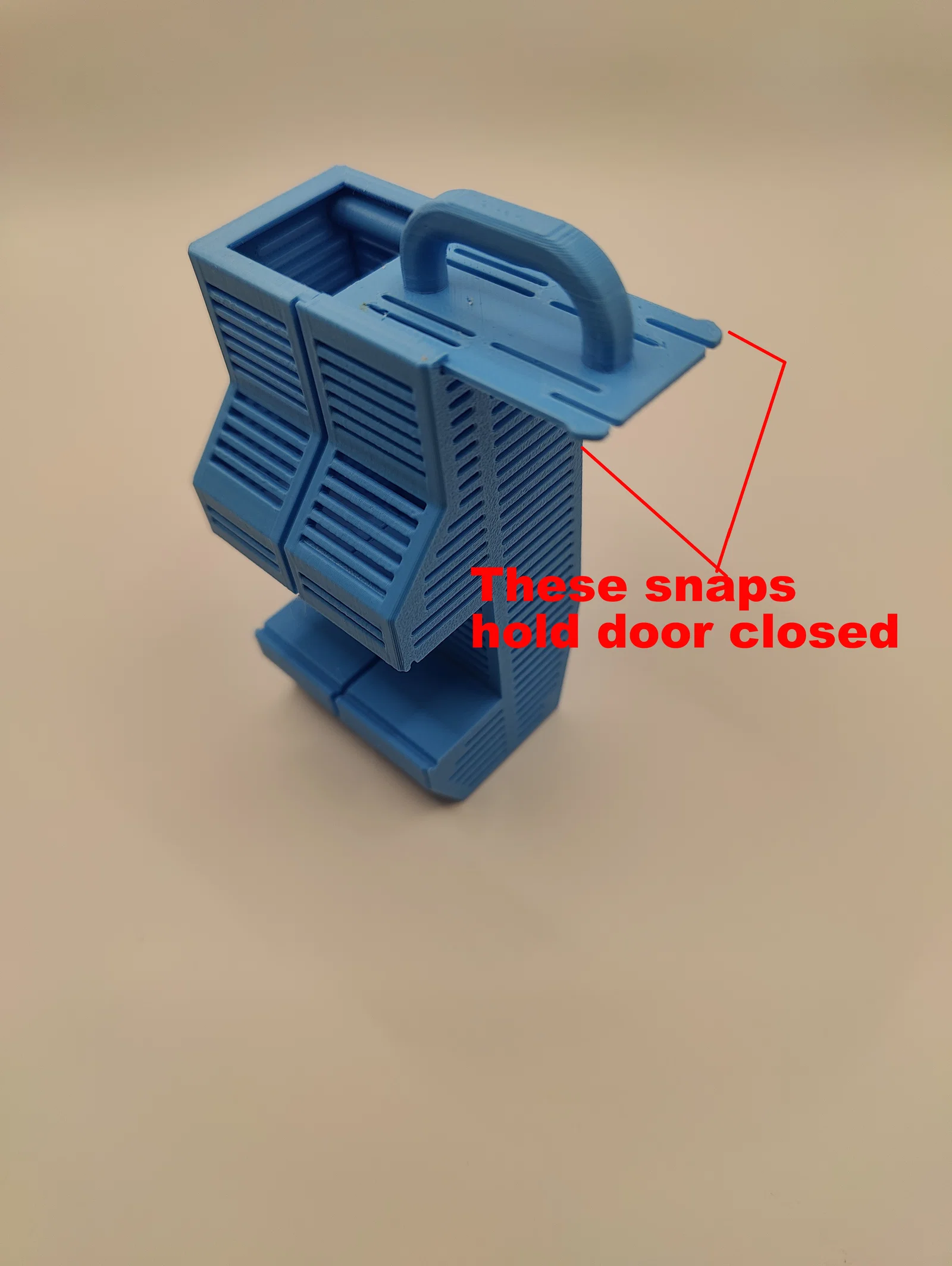 Mình cũng tích hợp nắp/cửa trượt phía trên kèm ngàm bấm (snap latches) để mở/đóng cho tiện. Cửa này còn có tay cầm giúp lấy hộp ra khỏi AMS dễ hơn. Ngoài ra, mình tối ưu kích thước trong giới hạn vẫn fit được AMS nhưng tăng thể tích để chứa được nhiều desiccant nhất có thể.
