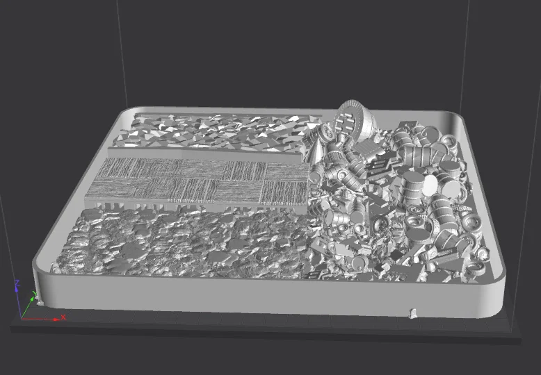 Texture Palette cho dry brushing, được remix bằng cách gom nhiều thành phần từ các tác giả khác nhau trên Thingiverse. Tác giả chỉ lắp ghép lại để dễ dùng cho nhiều mục đích, và có kèm link nguồn gốc.