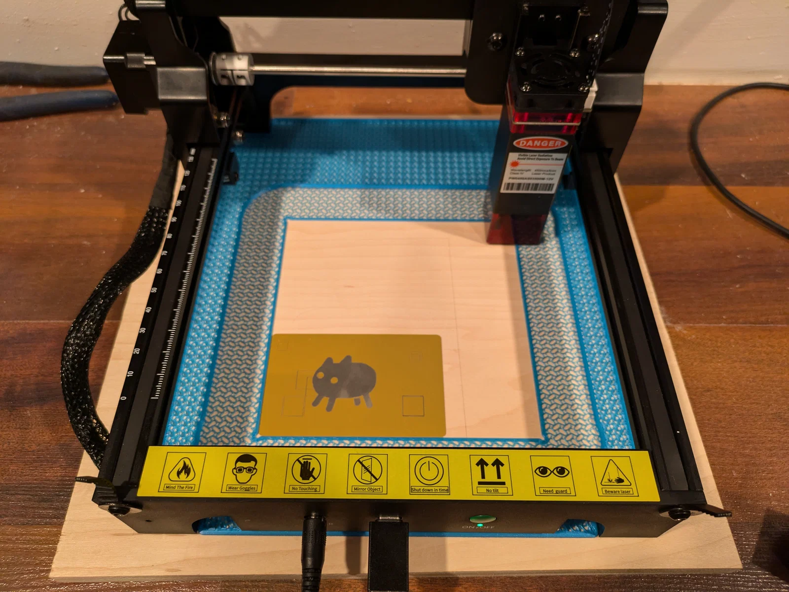 Sau khi in và gắn cố định dưới máy, bạn chạy một hình vuông 10x10, cách 10mm từ bên trái và bên phải. Đo lại và xem hình vuông rơi vào vị trí nào. Nếu bị thiếu, lấy 10 trừ cho số bạn đo được rồi ghi lại. Dùng header/start gcode trong LightBurn, bạn có thể chỉnh để nó “vừa khít” (vì độ chính xác của cái guide jig này còn tùy vào máy in của bạn).