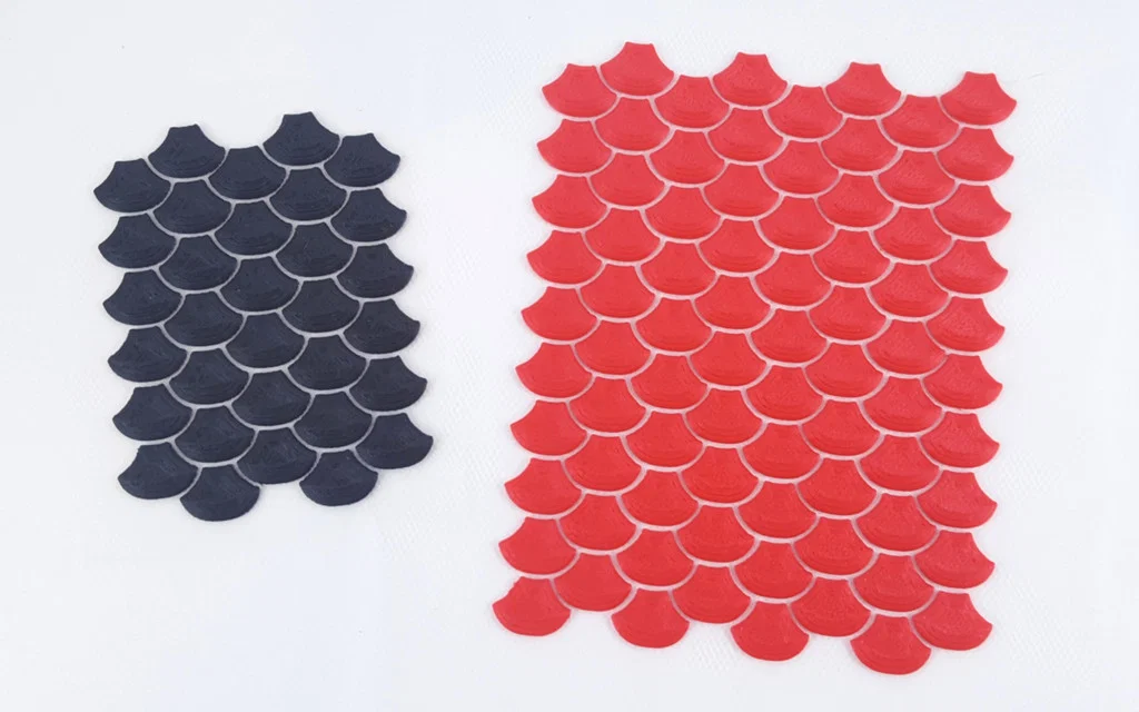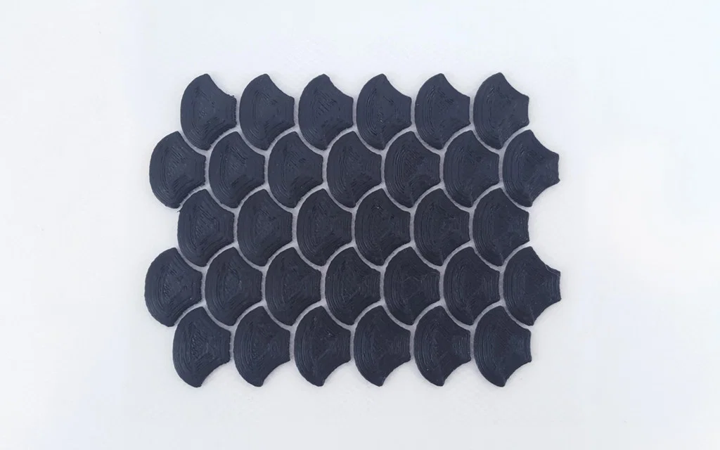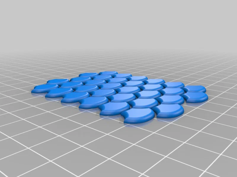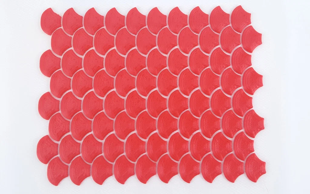 Lần đầu mình thử tạo pattern vảy cá để print lên vải tulle (print on fabric). Model có bản nhỏ và bản lớn để test setting trước. Mình pause sau layer thứ 2; chưa thử scale bằng slicer nhưng có thể làm được.