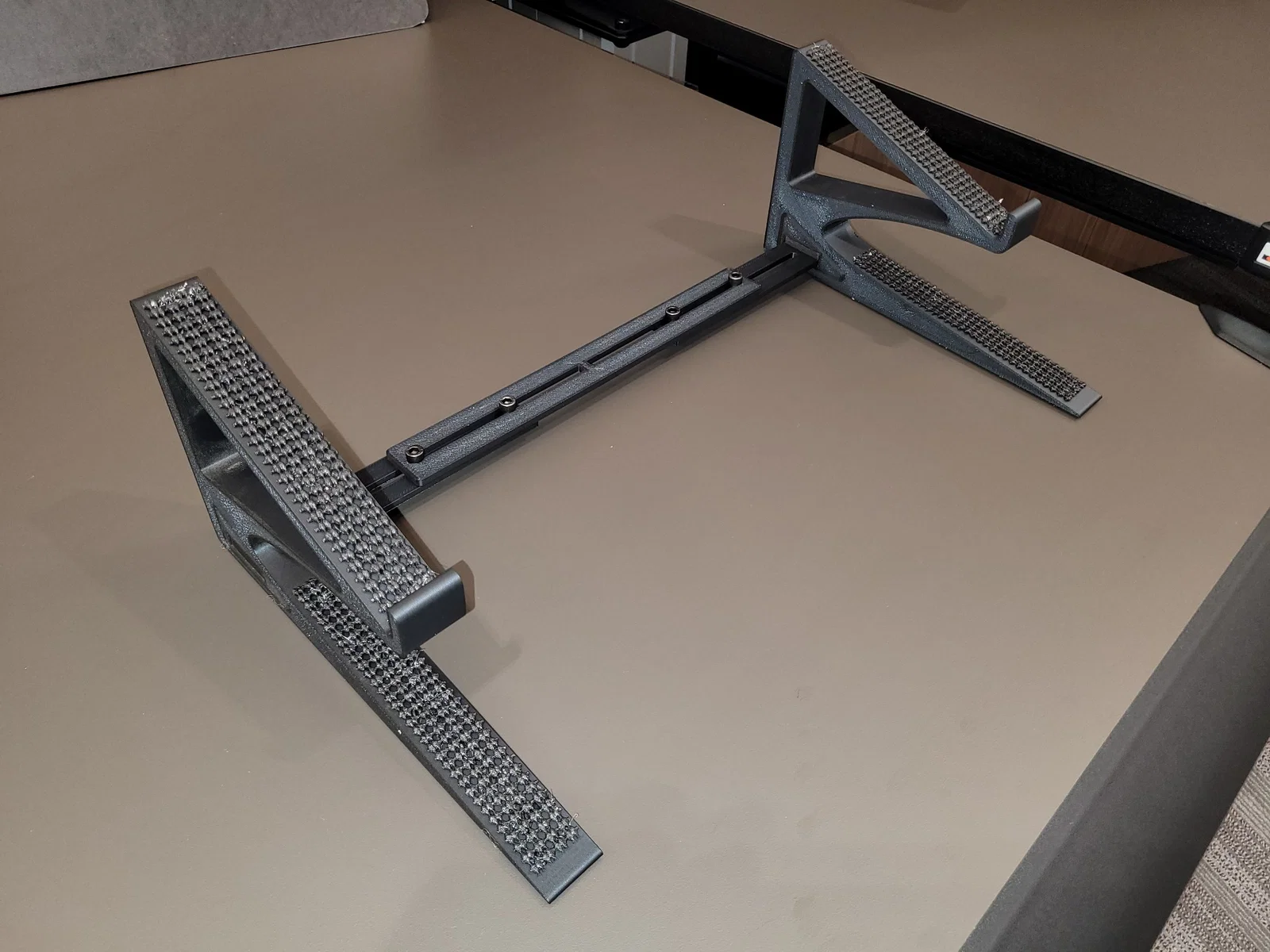 Mình đã chỉnh sửa mẫu giá đỡ bàn phím này cho ba mình, vì ba muốn bàn phím phía trên được đặt nghiêng thấp hơn để dễ sử dụng hơn. Cách duy nhất mình nghĩ ra là thiết kế lại nó trên Onshape với những thay đổi mà ba mình cần. Mình quyết định dùng một thanh trượt để tăng khả năng điều chỉnh cho hai giá đỡ, được mình lắp kiểu ép chặt (press fit) vào chân đế.