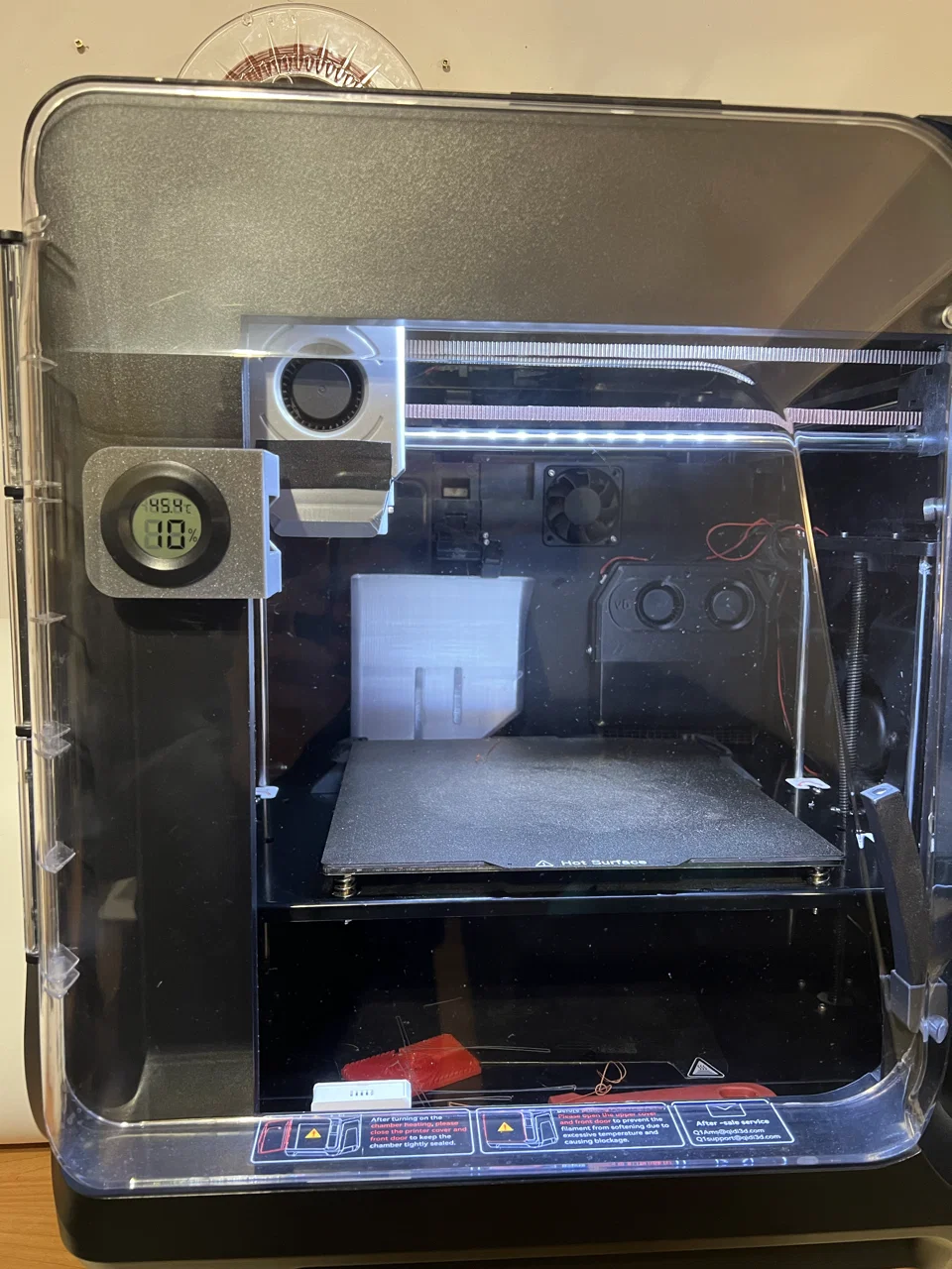 Mình muốn có cách nhanh gọn để kiểm tra nhiệt độ và độ ẩm bên trong buồng (chamber) của máy in. Số đo nhiệt độ sẽ không giống y chang với số hiển thị dạng digital trong giao diện gốc của máy, nhưng cho ra mức gần đúng. Số đo độ ẩm cũng tương tự so với một cảm biến digital khác.
