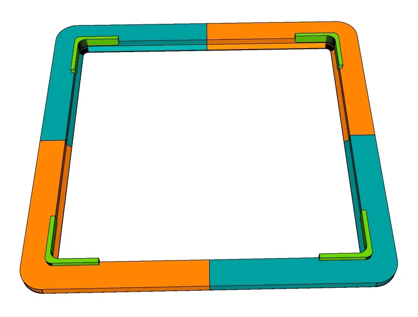 In 4x miếng góc và 2x mỗi miếng riser (phần màu xanh dương và cam).