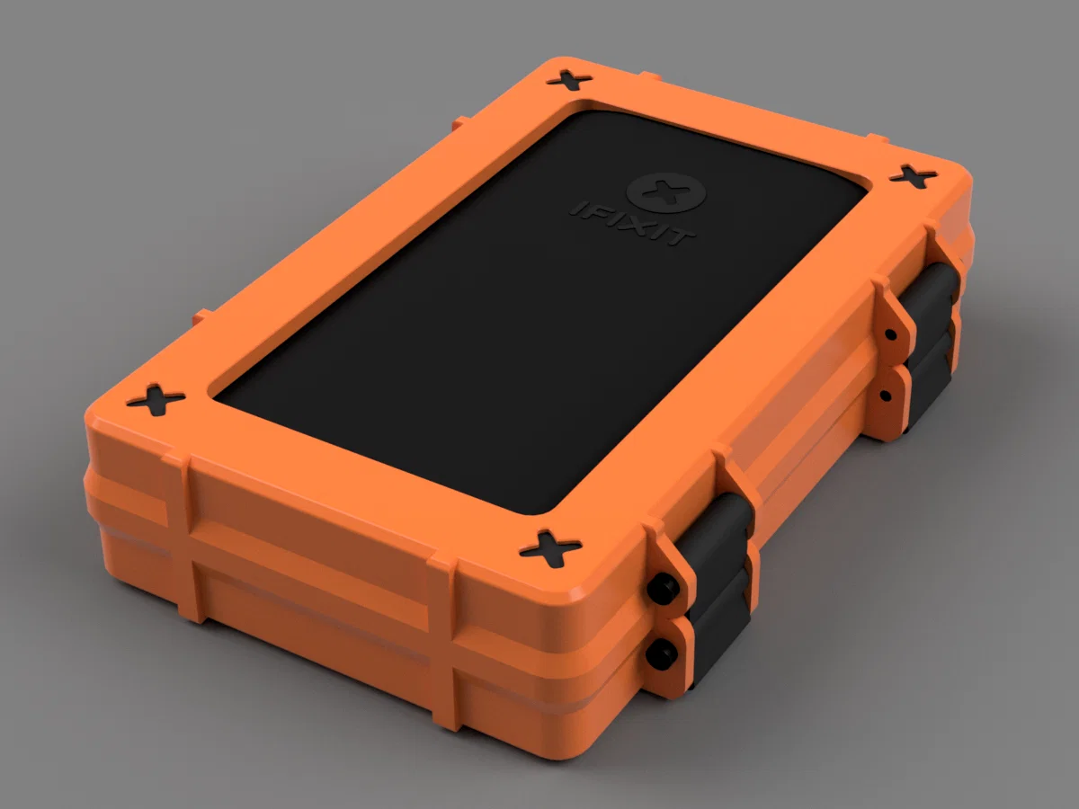 Mình muốn một phiên bản có bản lề/ngàm gài (latches) xịn hơn so với iFixit Mako Driver Kit box frame, nên remix với Rugged Box (Parametric) là lựa chọn quá hợp lý.
