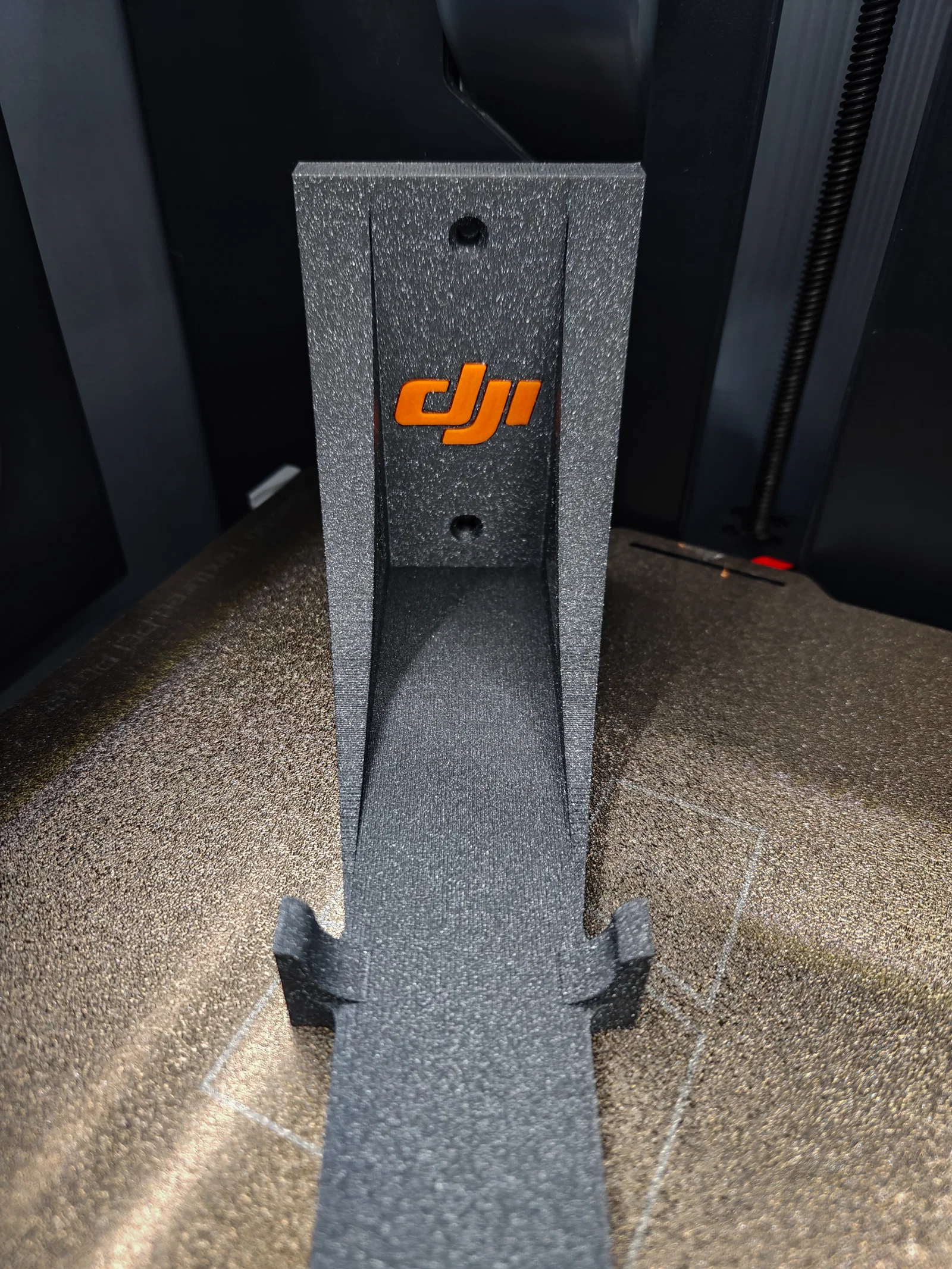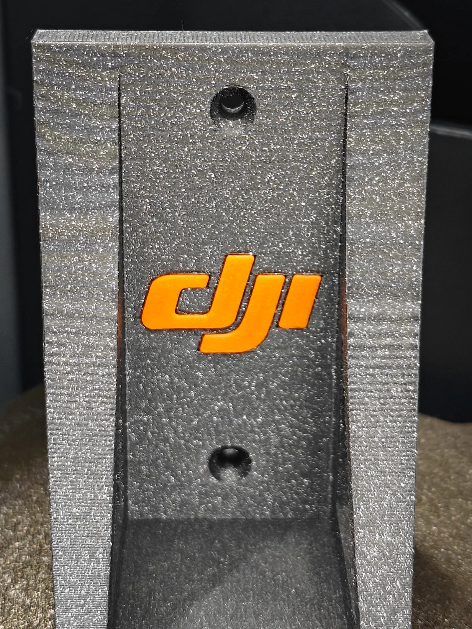 Wallmount tự thiết kế cho DJI AIR 3/AIR 3S, gắn vừa khít và chịu lực tốt (tới mức test với tạ 4kg). In **không cần support**, có thể in logo DJI riêng để dán. Có thêm bản AMS với logo AIR 3 in nhiều màu.