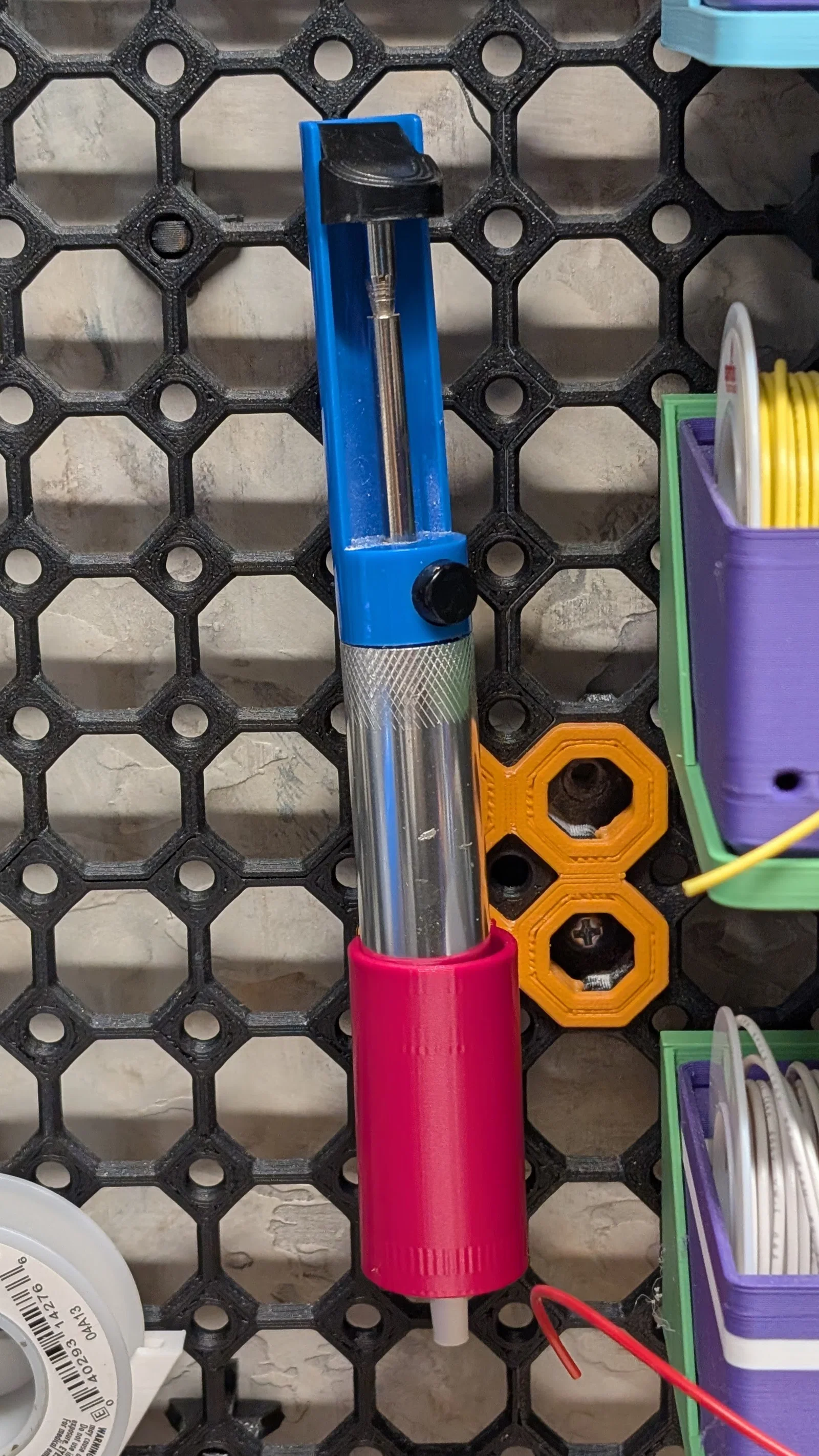 Giá đỡ solder sucker gắn lên Multiboard bằng một đầu nối push-fit. Hỗ trợ solder sucker đường kính tới 21.5mm, in dễ không cần support và nên in theo hướng upside-down để ra form đẹp.