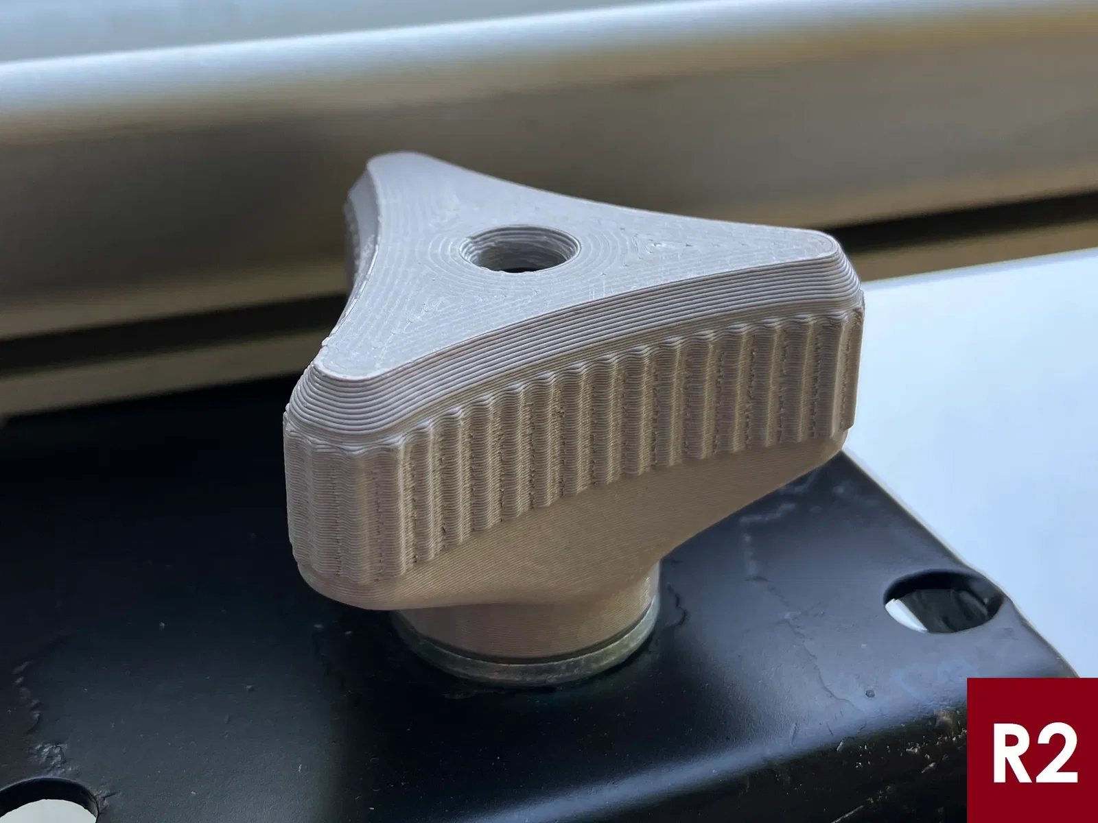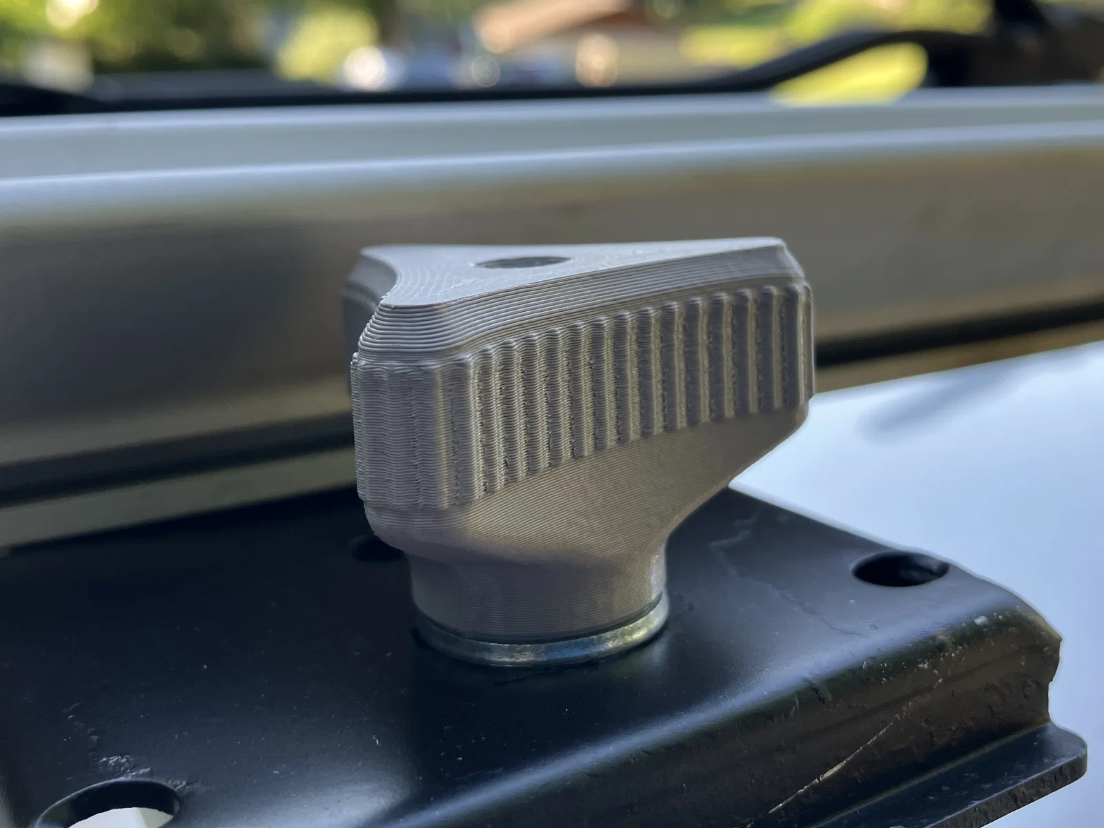 Mẫu thumb nut lực siết cao, thiết kế chắc chắn để sửa baga xe đạp gắn nóc. Có các phiên bản từ M4 đến M8, cần tạm dừng khi in để chèn đai ốc ISO 4032 hoặc DIN 6334 extension nut.