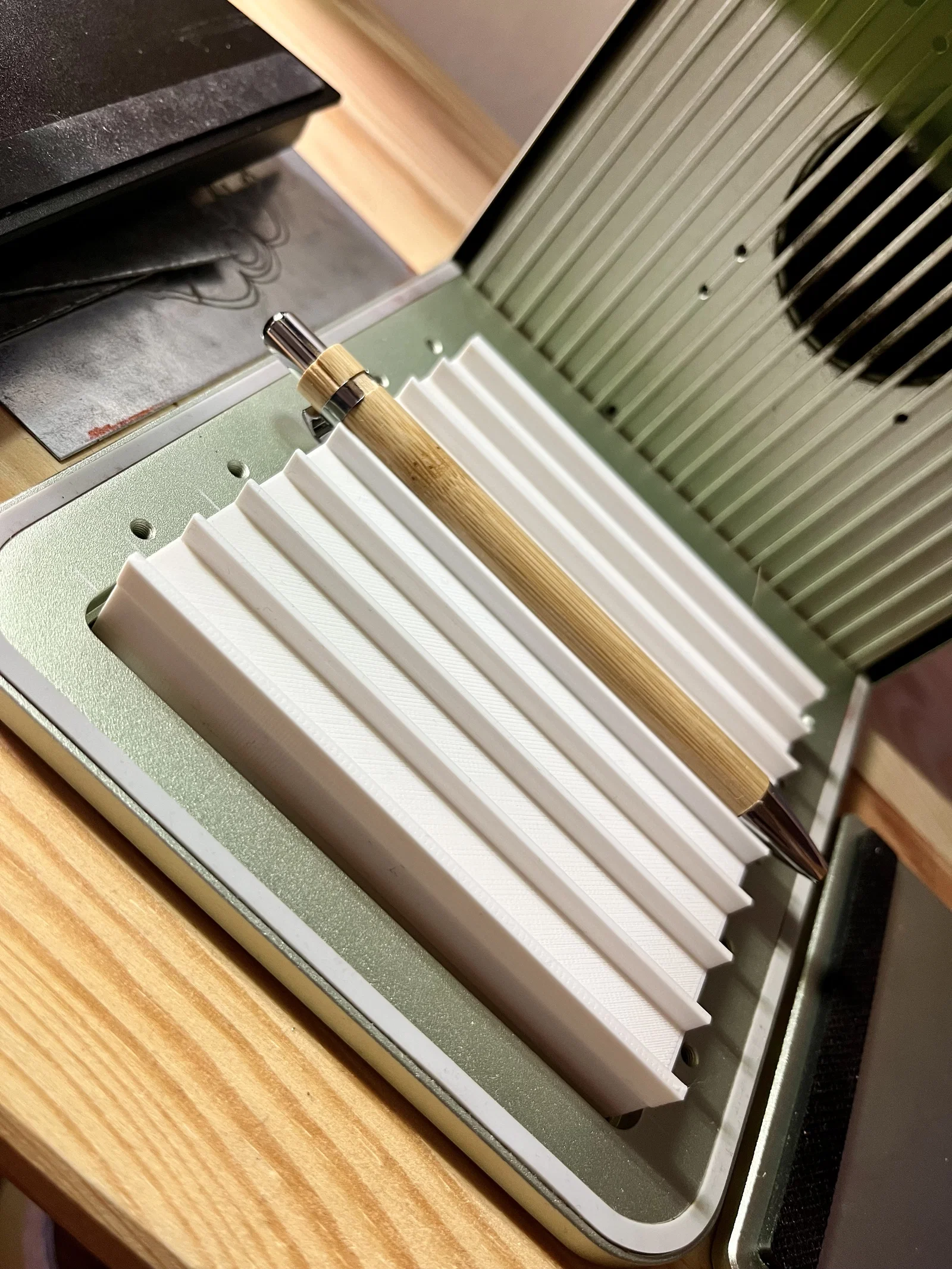 • Cài đặt in: Để có độ mịn tốt nhất, bạn nên sử dụng chiều cao lớp (layer height) từ 0.2 mm, đảm bảo các rãnh giữ bút được trơn tru và không làm trầy xước vỏ bút.