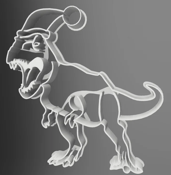 Phiên bản T-Rex cookie cutter cho mùa Giáng Sinh, đội mũ Santa cực dễ thương. Nếu đạt hơn 200 lượt tải, tác giả dự tính bổ sung thêm bao quà và áo khoác ông già Noel cho T-Rex.