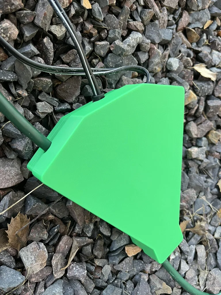 Thiết kế của mình là các nắp che bảo vệ cho 2 loại dây nối (US) 3 ổ cắm phổ biến, dùng tạm ngoài trời cho đèn trang trí dịp lễ, v.v. Loại A dành cho kiểu đầu cắm dạng tam giác – Loại B dành cho kiểu dạng chữ nhật. Tuy không chống nước hoàn toàn, nhưng vẫn giúp che chắn phần nào trước nắng mưa và các tác động thời tiết.