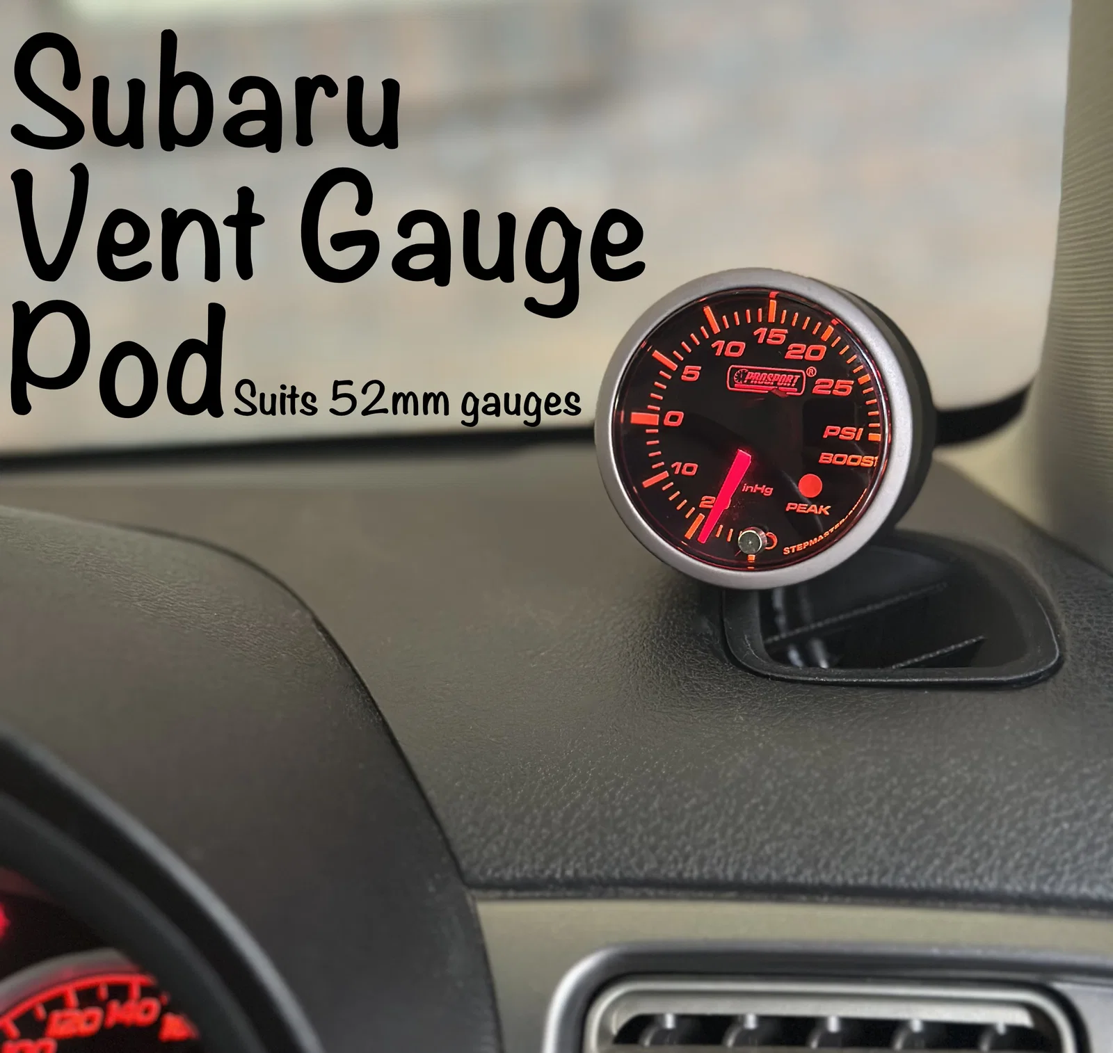 Pod gắn đồng hồ 52mm thay cho khe gió taplo của Subaru Impreza WRX/STI 2008–2014 (bản RHD). Xe LHD có thể mirror trong slicer. Khuyến nghị in vật liệu chịu nhiệt; PLA dễ mềm/chảy khi phơi nắng.