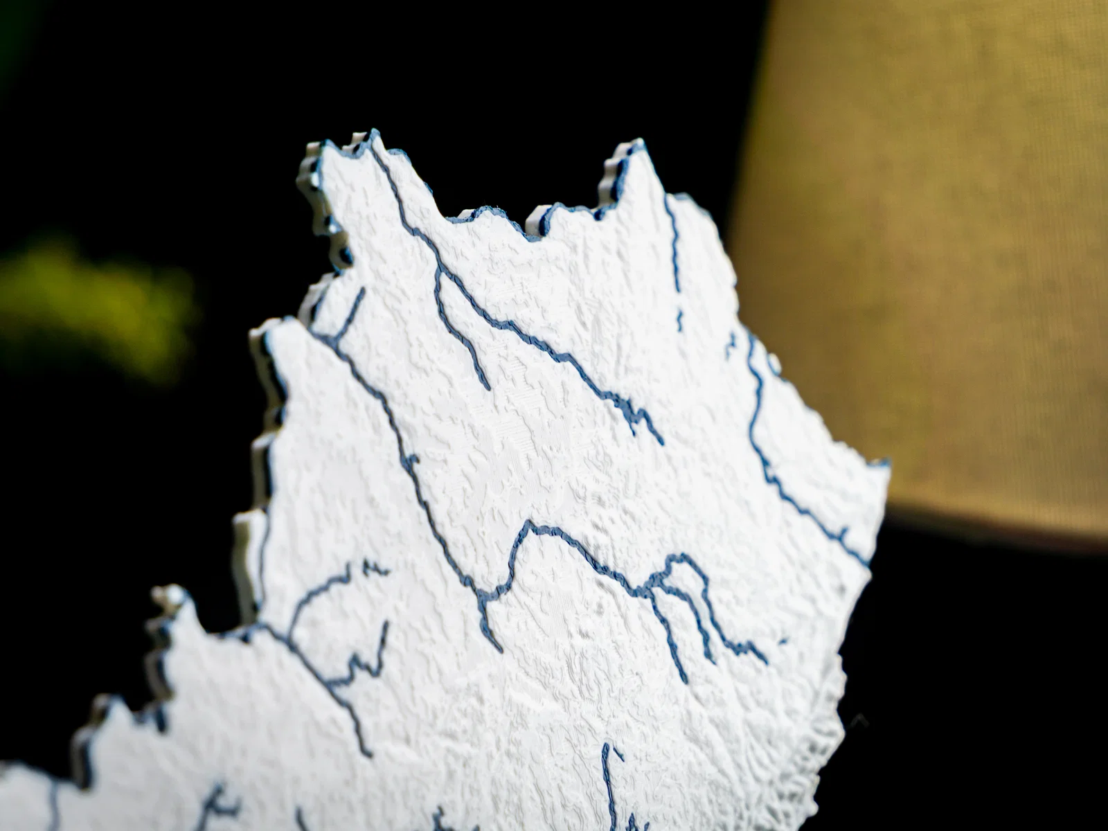 Muốn nổi bật suối, hồ và đường bờ, hãy dùng filament glow-in-the-dark hoặc filament translucent—hoặc đơn giản là dùng màu khác với màu nền!
