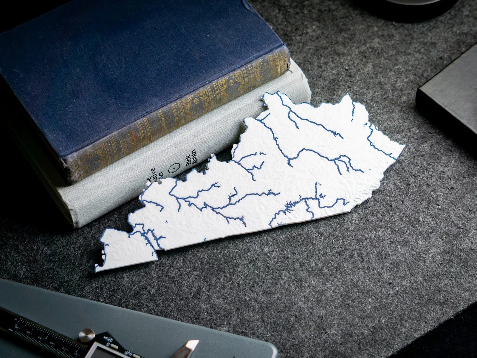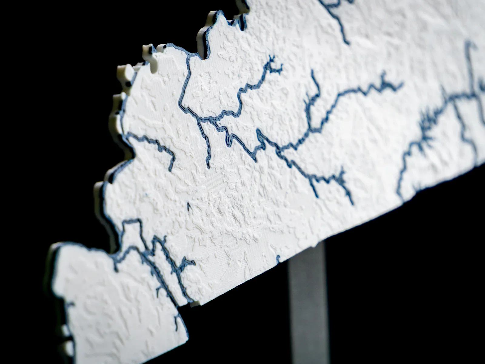 Bản đồ địa hình & thủy hệ Kentucky, USA với núi, đường bờ, suối và hồ—có thể in 2 màu hoặc 1 màu! Tất cả các bang trong bộ sưu tập USA of Plastic đều ở tỉ lệ 1:2500000 và có thể ghép khớp với nhau như trò xếp hình.