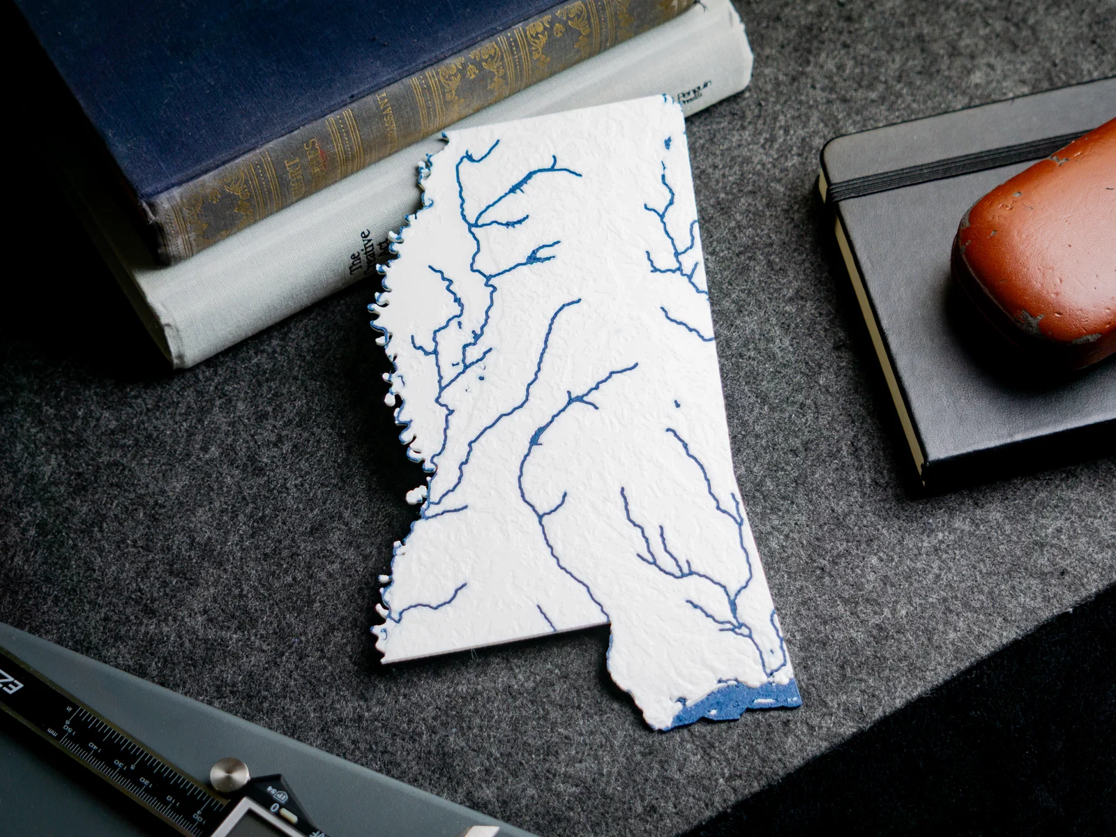 Bản đồ địa hình và thủy văn Mississippi, USA với núi, đường bờ biển, suối/sông và hồ — in được 1 màu hoặc 2 màu! Tất cả các bang trong bộ sưu tập USA of Plastic đều theo tỉ lệ 1:2500000 và có thể ghép khớp với nhau như trò xếp hình.