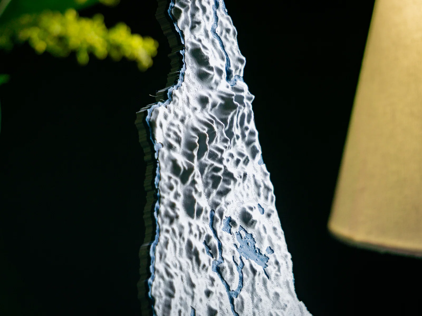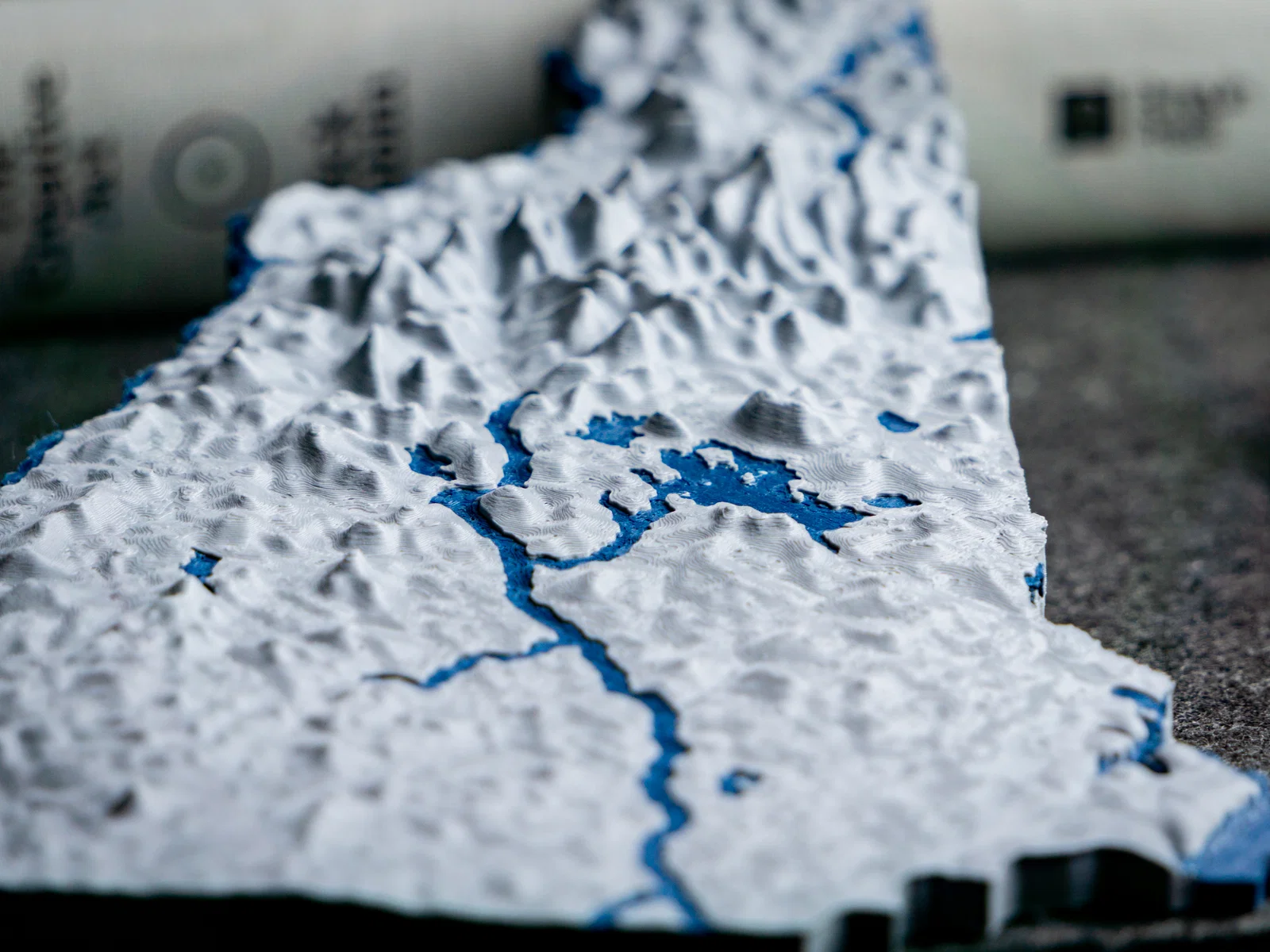 Muốn nổi bật suối, hồ và đường bờ biển thì dùng filament phát sáng trong bóng tối (glow-in-the-dark) hoặc trong mờ (translucent) — hoặc đơn giản là chọn màu khác so với màu nền!