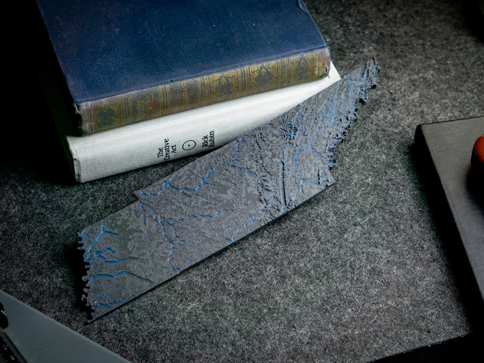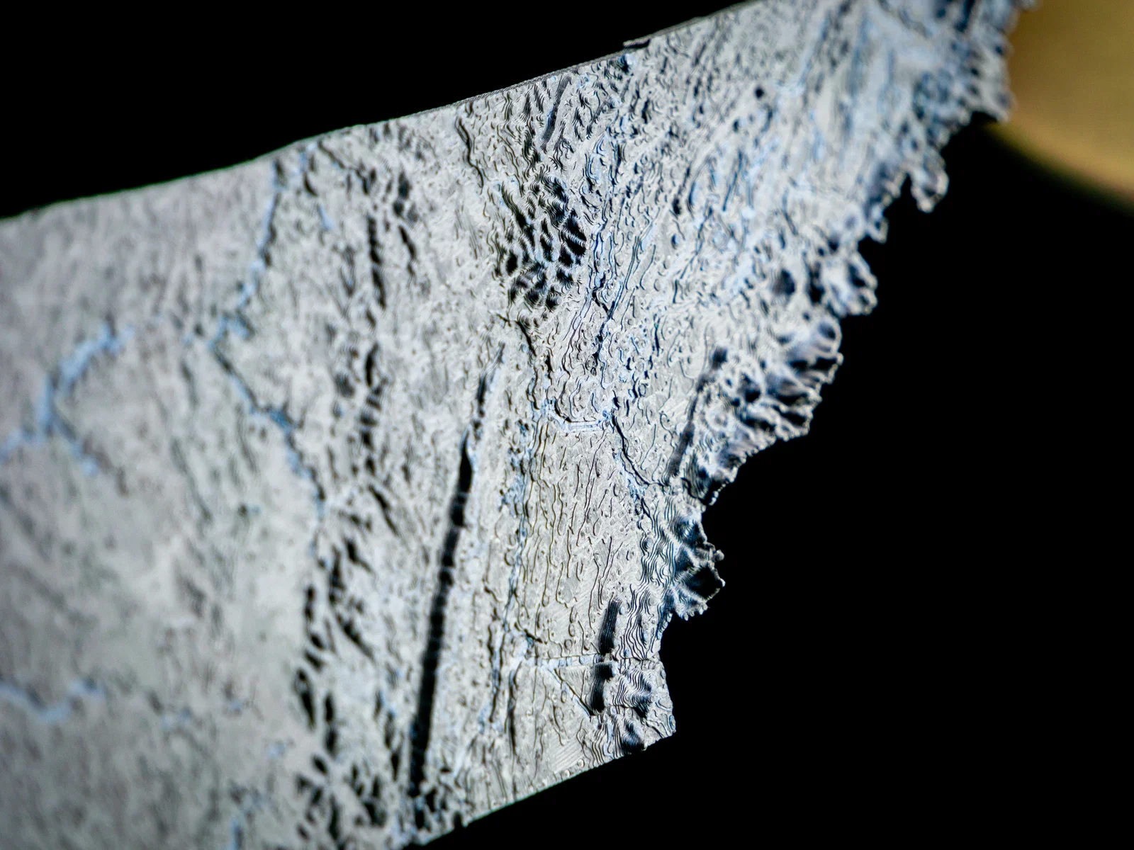 Làm nổi bật suối/sông, hồ và đường bờ bằng filament glow-in-the-dark hoặc translucent — hoặc đơn giản là dùng một màu khác so với phần nền!