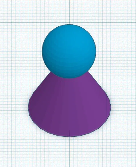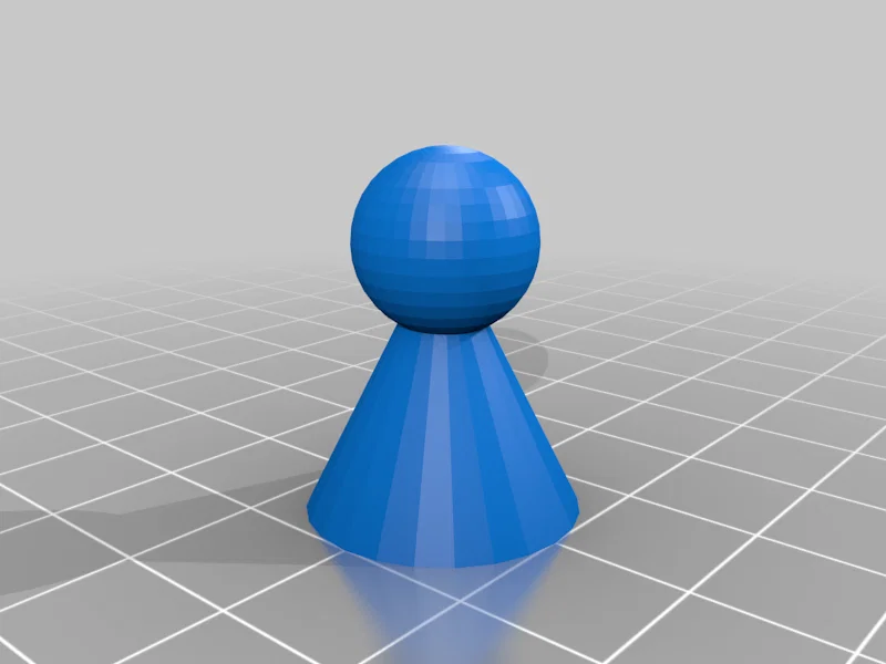 Lần đầu mình thiết kế 3D nên cần cái gì đơn giản. Mẫu này là một khối nón, bên trên là một khối cầu, canh kích thước cho khớp với pawn zin. Vì các khối này ban đầu là solid, nên mình thêm các khối tương ứng làm “hole”, chỉnh kích thước để chừa thành dày 2mm rồi đặt chúng vào bên trong khối đặc. Bản in cuối cùng là rỗng ruột, giống như pawn zin dạng ép khuôn.