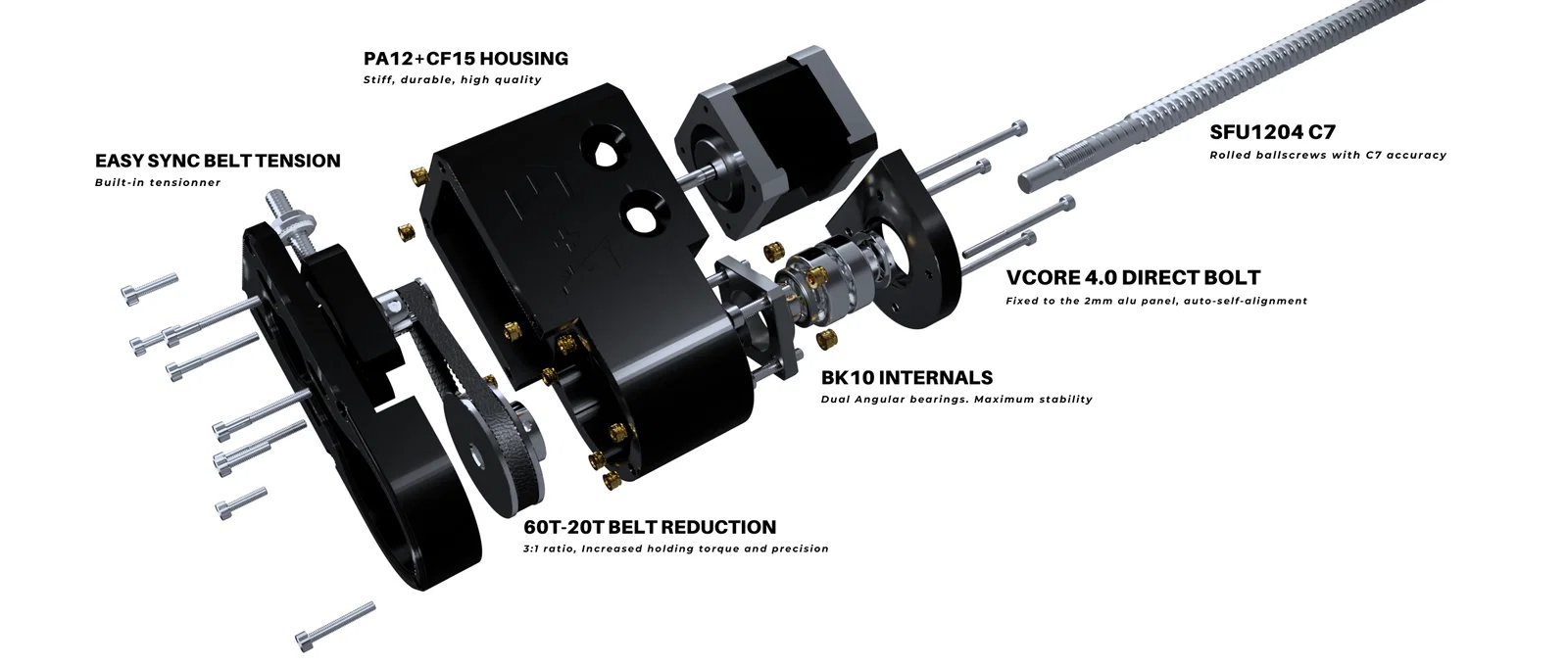 - Tương thích hoàn toàn với dòng máy in 3D VCORE 4.0 để nâng cấp lên Ballscrew SFU1204.