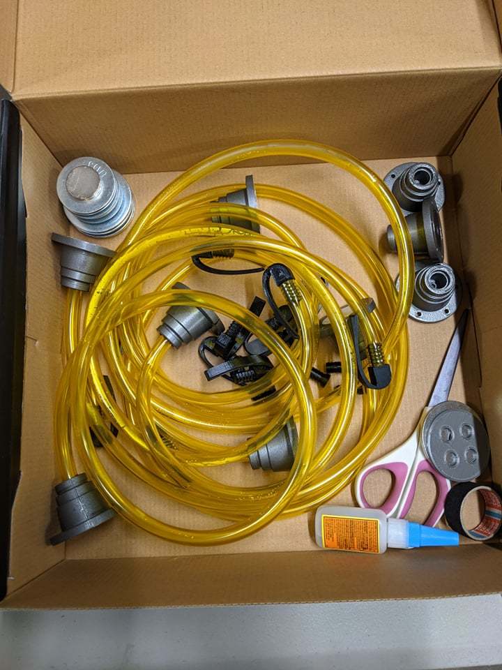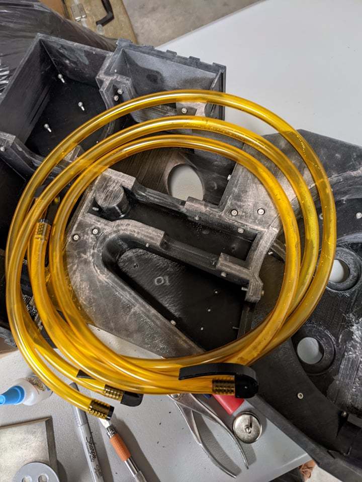 Thứ tư, mình quên nói phần tubing mình làm thế nào. Mình dùng ống clear vinyl ở Lowes (khoảng $5 cho 10 feet, $10 cho 20 feet) loại 3/8" ID và 1/2" OD. Sau đó mình nhuộm trong xô vài tiếng bằng cách hòa tan 3–4 viên “urinary relief pills” trong nước nóng; nhớ đeo găng tay, không là bạn sẽ vàng tay mấy ngày liền. Phơi khô ống rồi ấn phần belt clip in 3D và connector plug vào hai đầu.