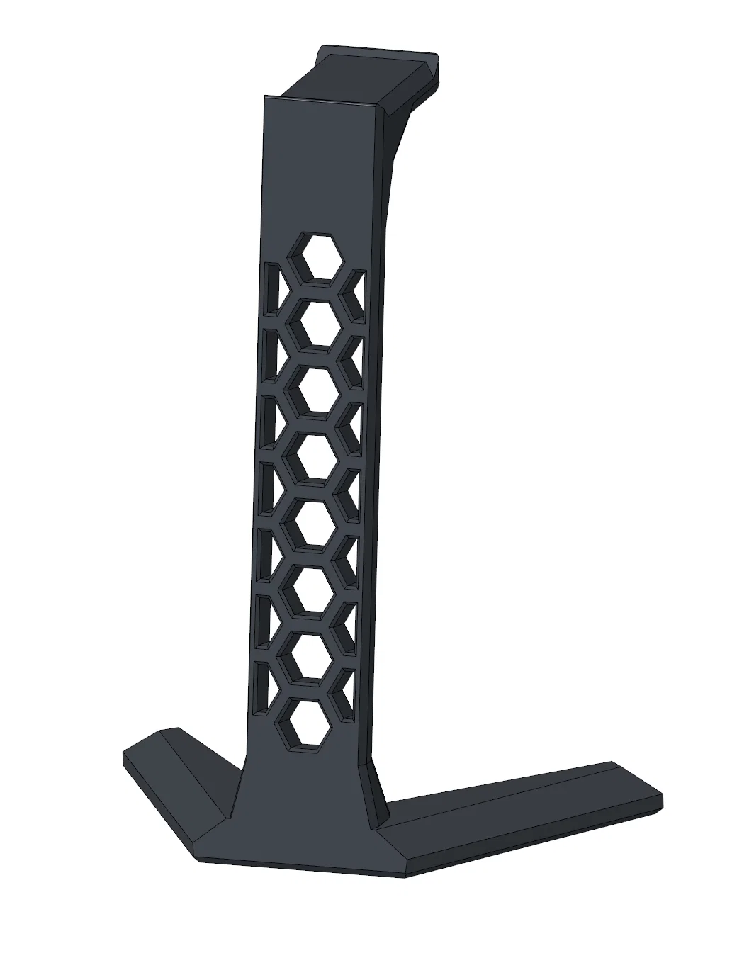 Phần chân đế của giá đỡ được tính toán kỹ lưỡng để đảm bảo độ vững chãi khi đặt trên các bề mặt phẳng như gỗ hoặc kính. Điểm nhấn đặc biệt nằm ở cấu trúc tổ ong trên phần thân thẳng đứng, giúp giảm thiểu lượng nhựa in cần thiết mà vẫn duy trì được độ cứng cáp cần thiết để chịu lực cho hầu hết các loại tai nghe thông dụng hiện nay. Việc in 3D mẫu này cũng khá dễ dàng, phù hợp cho cả những người mới bắt đầu làm quen với công nghệ in 3D tại nhà nhờ cấu trúc hình học không quá phức tạp.