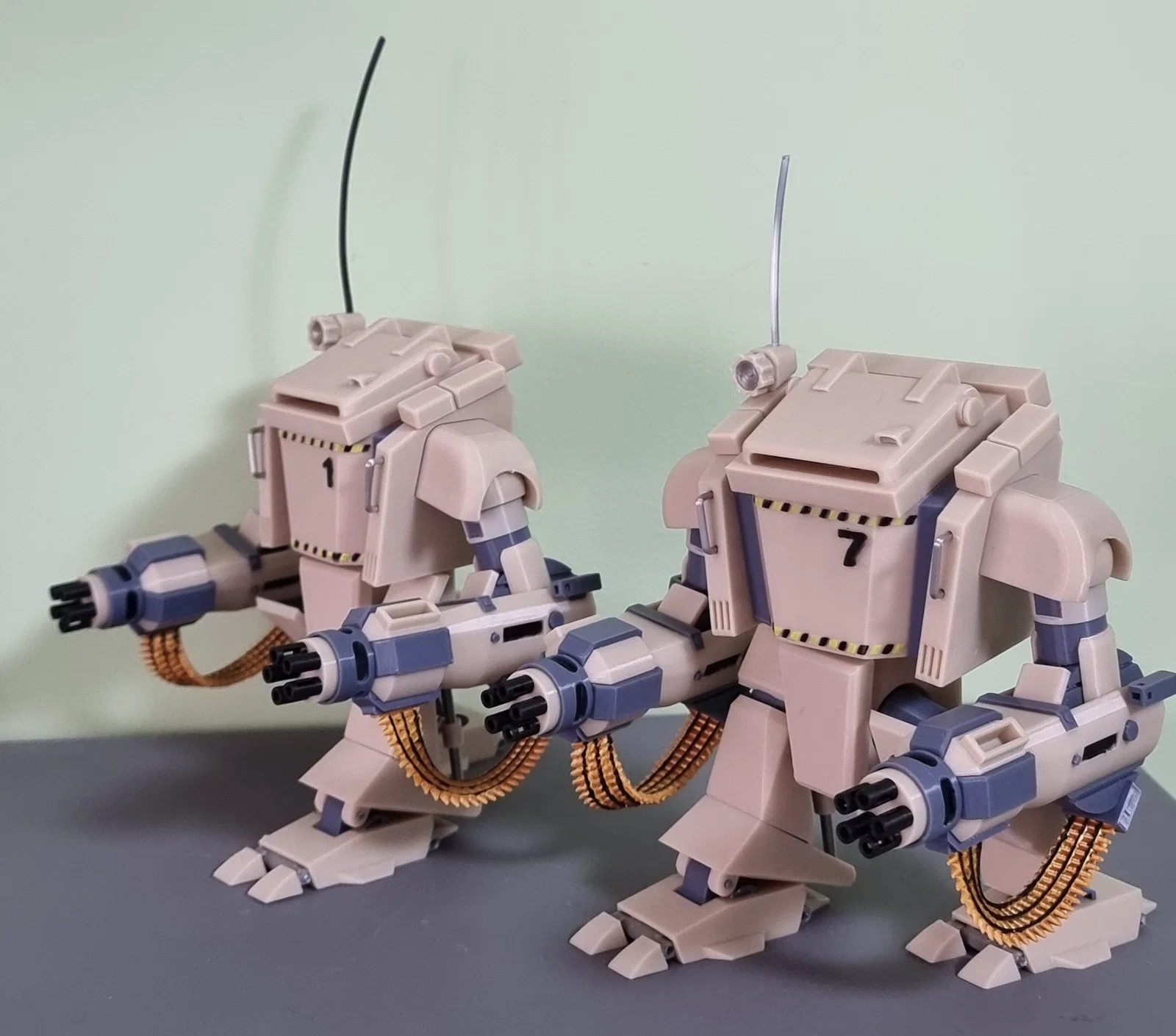 - In bằng Prusa MK4. Layer height 0.15, riêng dây đạn (bullet belts) là layer height 0.1.