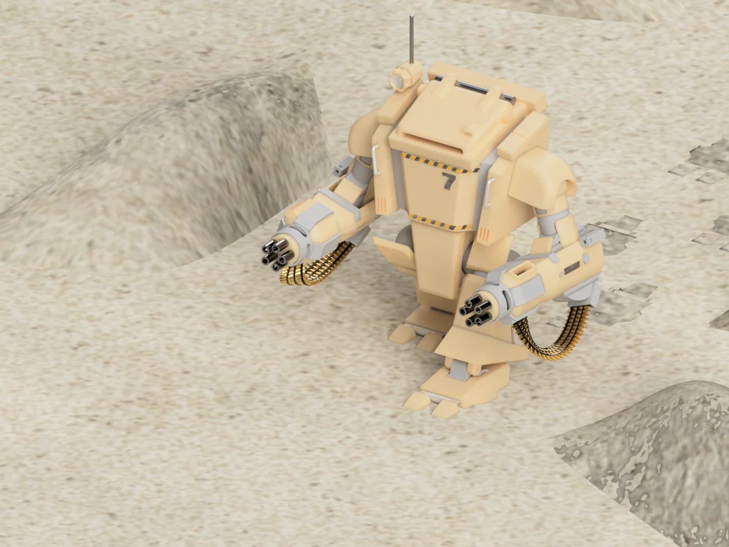 - Khớp chuyển động ở tay, chân, thân và súng gatling.