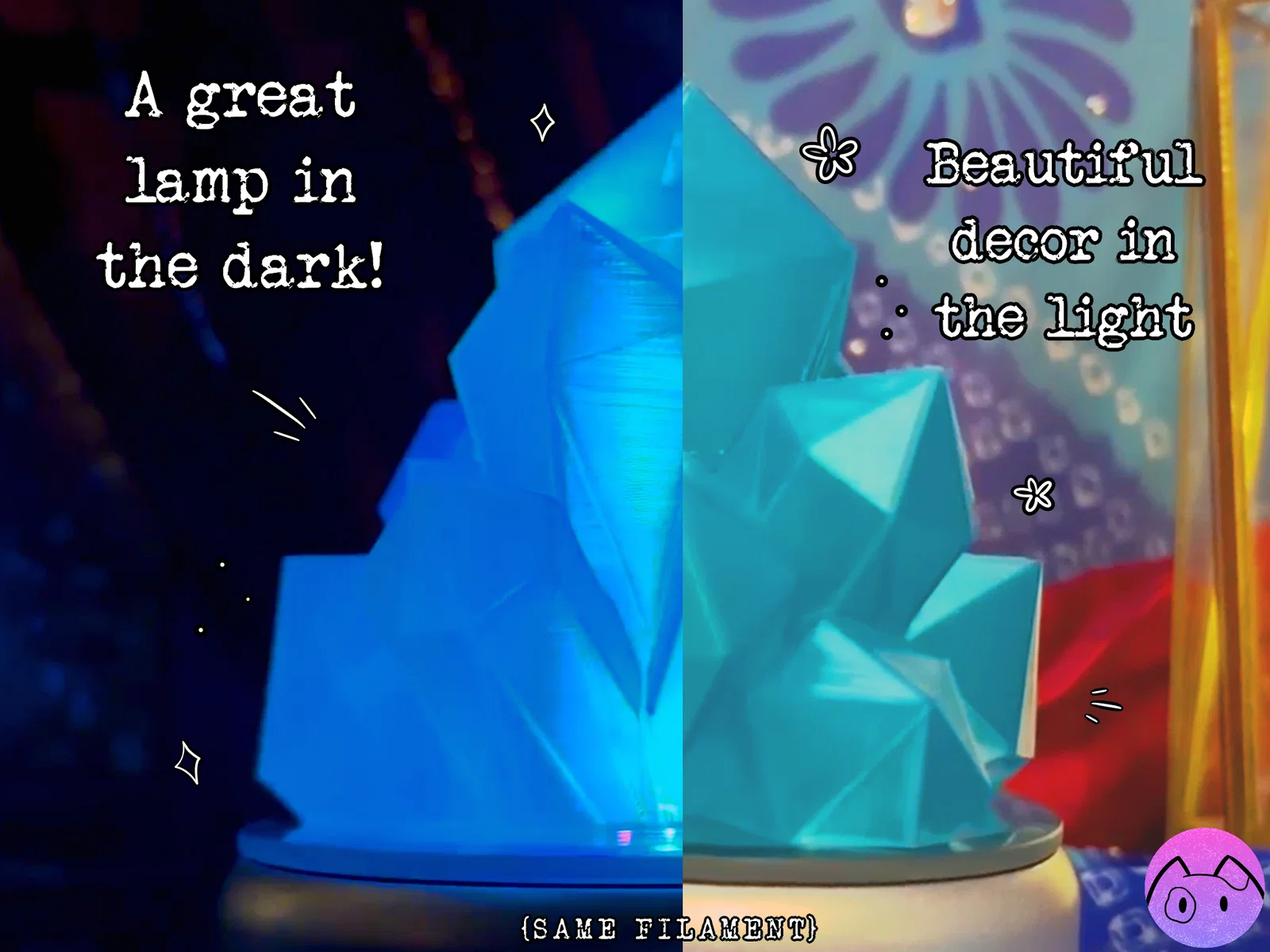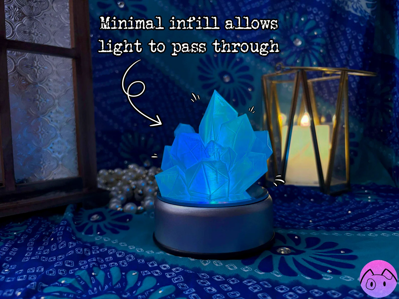 Chụp đèn nhỏ lấy cảm hứng từ những cụm tinh thể như dưới đáy biển. Đế lõm 1.5" vừa nhiều nến tealight chạy pin và cả lighted base. Khuyến nghị infill “Lightning”. Đã test tốt với PLA & PETG.