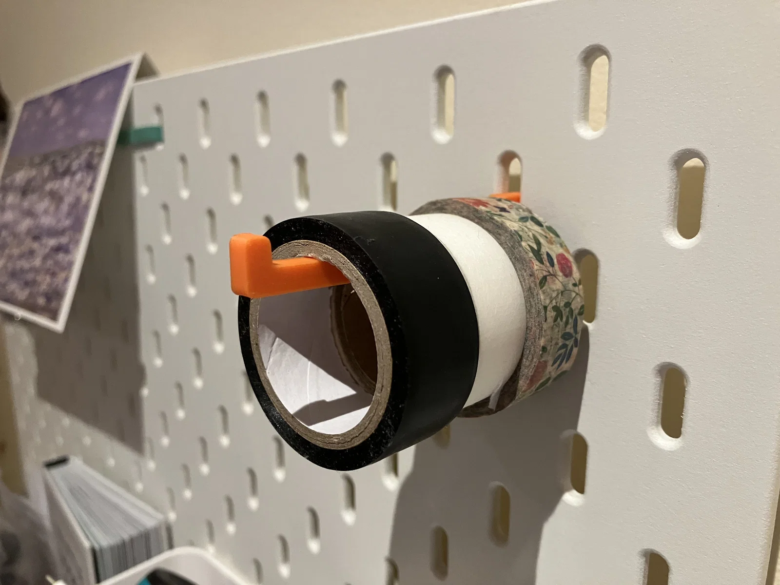 Thiết kế cực đơn giản để treo vài cuộn băng keo trên bảng Ikea Skadis, tiện tận dụng những đoạn cuối của cuộn filament. Dài đủ cho 3 cuộn, có thể chỉnh độ dài bằng file STEP hoặc Onshape.