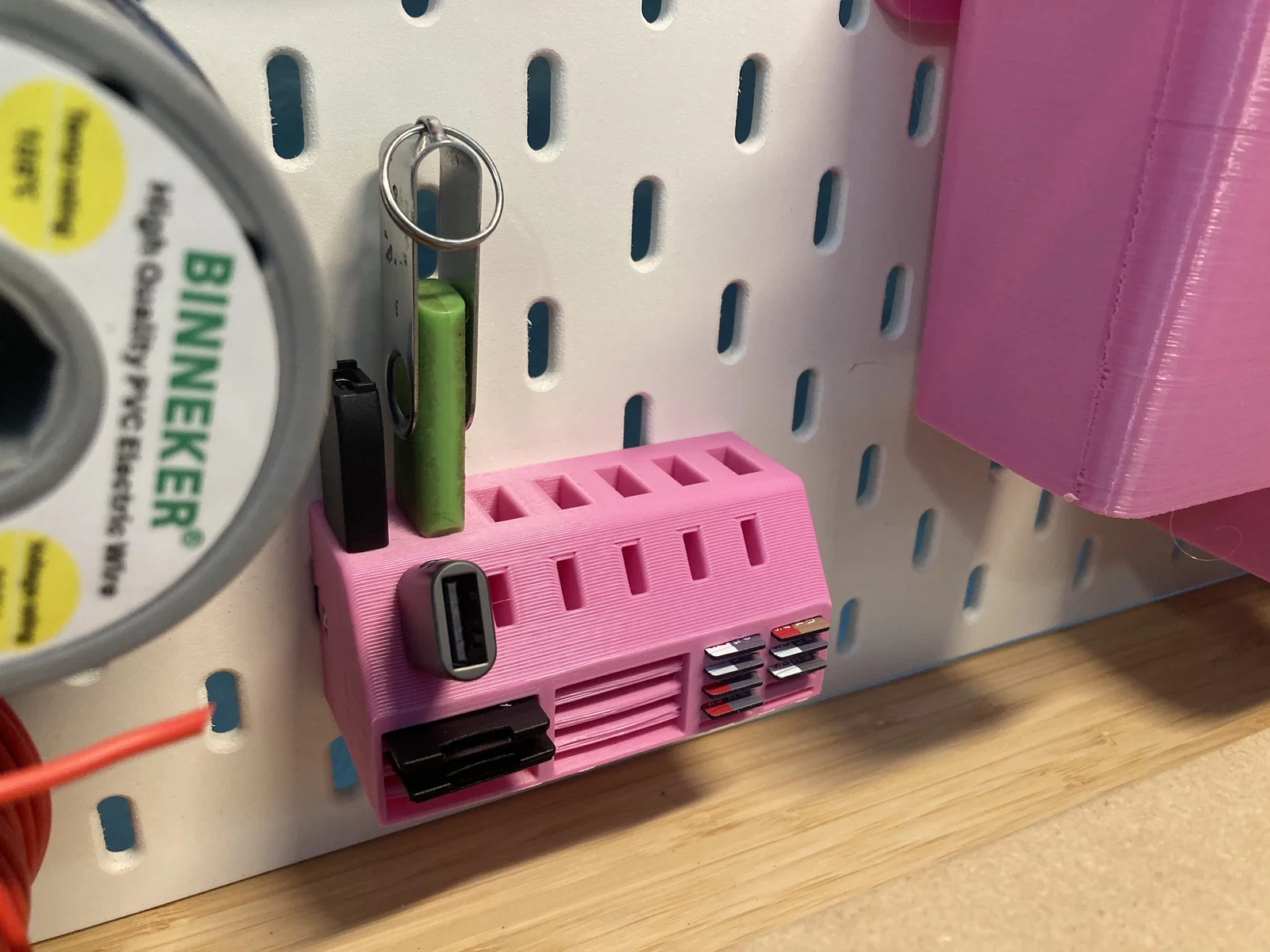 Bản remix kệ giữ USB flash drive và thẻ SD cho Skadis, bổ sung thêm khe USBC và micro SD.