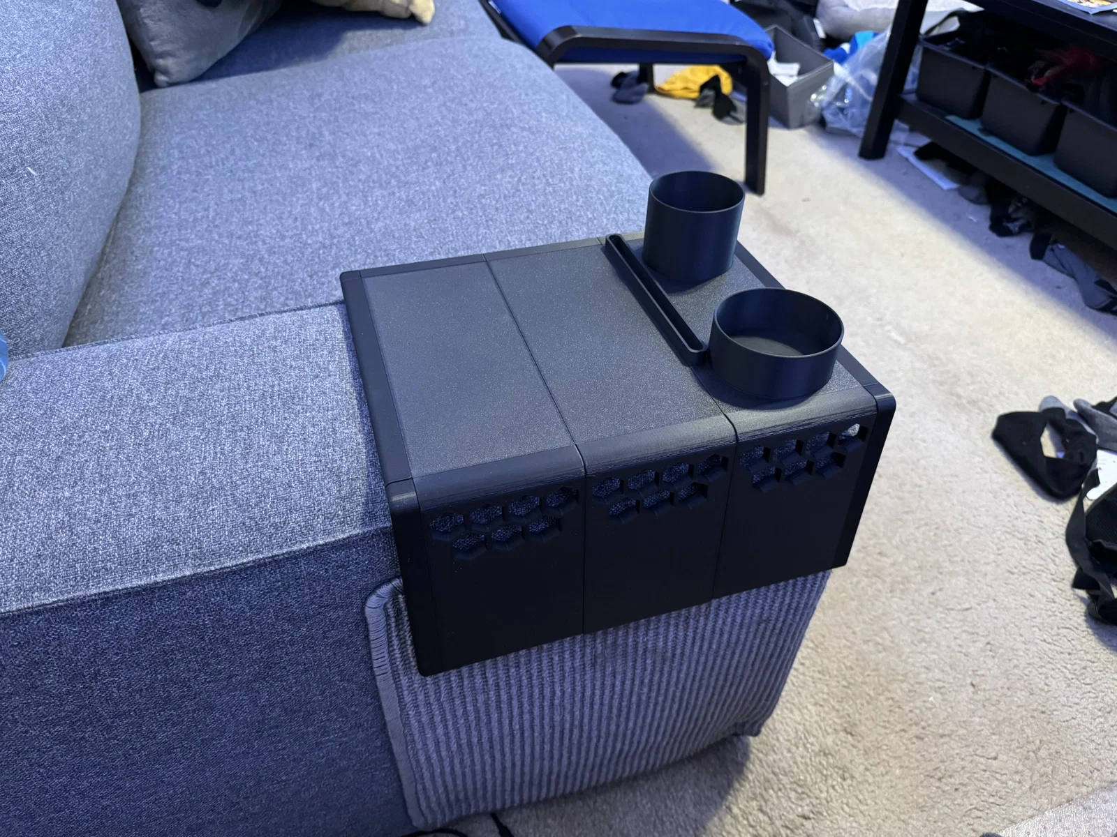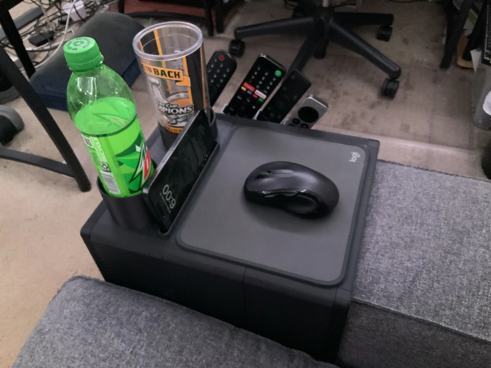 Trong căn hộ của mình, mình có một cái ghế sofa IKEA Kivik. Mình hay ngồi trên ghế dùng PC xuất ra TV lớn. Với lại mình có cả đống remote để lung tung, thỉnh thoảng còn có ly nước nữa. Thành ra vừa thiếu chỗ để đồ vừa bất tiện khi sử dụng. Trước đây mình có để một cái bàn cạnh ghế dạng mỏng ở bên hông, nhưng cũng không giúp được nhiều, mà gần đây nó còn bị bung bể luôn. Mình mới nghĩ hay là tự thiết kế gì đó rồi 3D print ra một giải pháp.