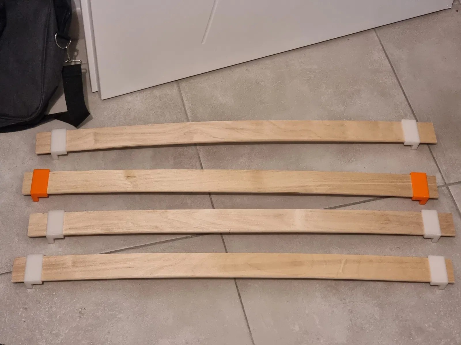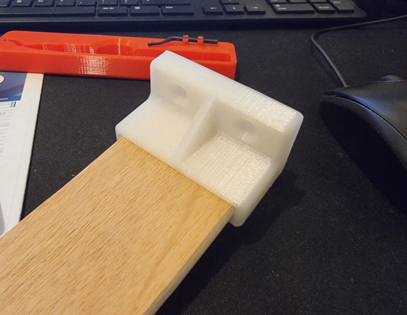 Để sửa lại lưng ghế sofa của tôi, tôi đã thay thế các dây đai bị rách bằng các thanh gỗ. Vì vậy, tôi đã thiết kế giá đỡ thanh vít cho các thanh 48x8mm. Lỗ khoan cho các vít là Ø4mm.