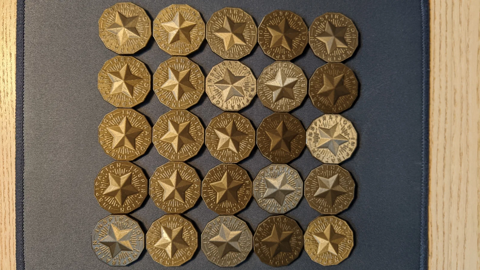 Phiên bản Tokens of Inspiration (DnD 5e) nhỏ hơn để in theo chiều dọc, giúp chữ nhỏ rõ nét và bề mặt mịn đẹp. Có kèm .gcode (tối ưu cho MK3) và danh sách setting cần chỉnh để in ổn định.