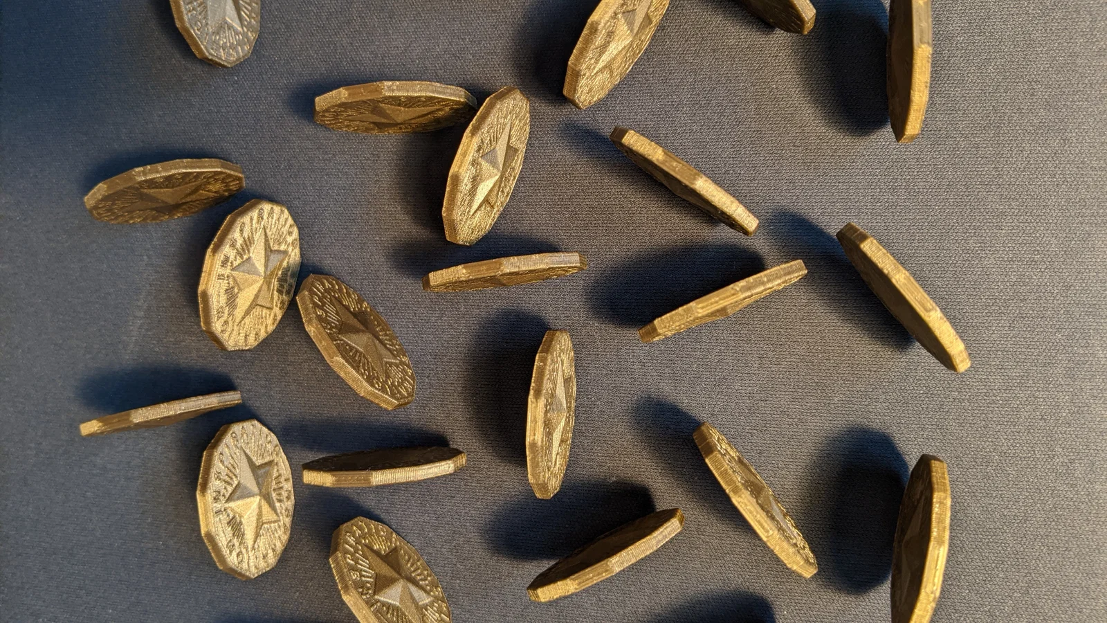 In dọc là cách mình đạt được độ phân giải cần thiết để in phần chữ nhỏ, nhưng rồi mình phát hiện ra làm vậy còn có mấy cái lợi khác. Token nhìn đẹp hơn, sờ mịn tay và cầm rất đã. Thành ra nó còn làm đồ fidget được luôn, đúng nghĩa đen. Bạn có thể xoay nó trên mặt bàn để tạo hiệu ứng khá hay.