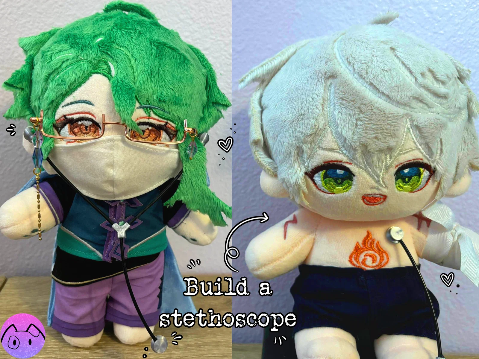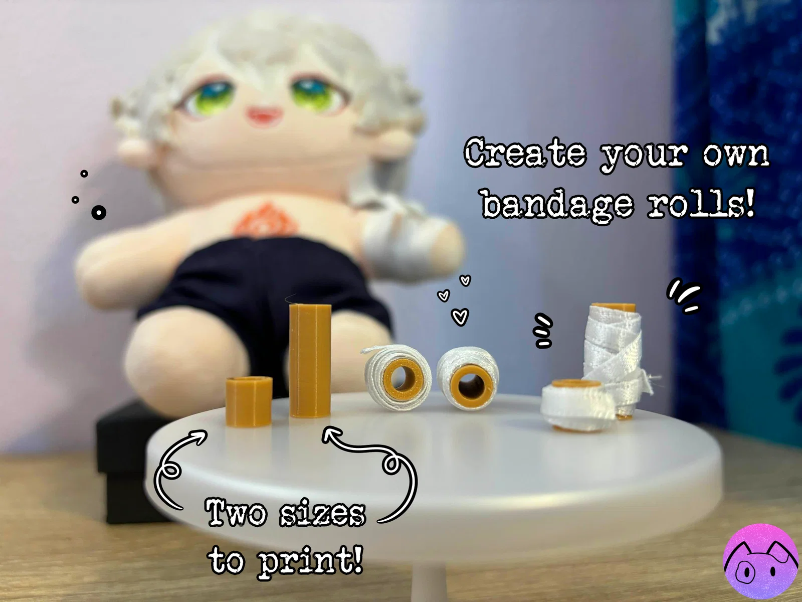 Bộ Miniature Doctor Set dành cho mô hình và búp bê: ống nghe, otoscope, búa phản xạ, ống tiêm, nhiệt kế, bảng kẹp, chai xà phòng, băng gạc và hộp/khay đựng. Một số chi tiết dùng filament 1.75mm để lắp.
