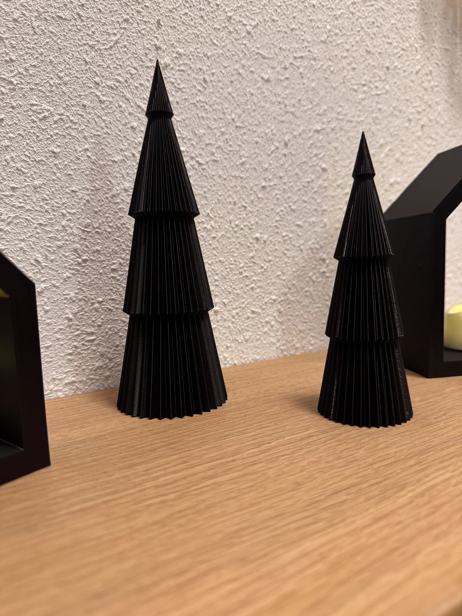 Giáng sinh đang đến gần và tụi mình cần một chút đồ trang trí cho tổ ấm - và đây là thành quả. Một món đồ theo phong cách tối giản nhưng vẫn rất đẹp mắt. Cả hai kích thước của ngôi nhà đều có thể đặt nến LED bên trong. Cây thông có thể tùy chỉnh kích thước, cây bên trái đang ở tỉ lệ 100% và cây bên phải là 75%.