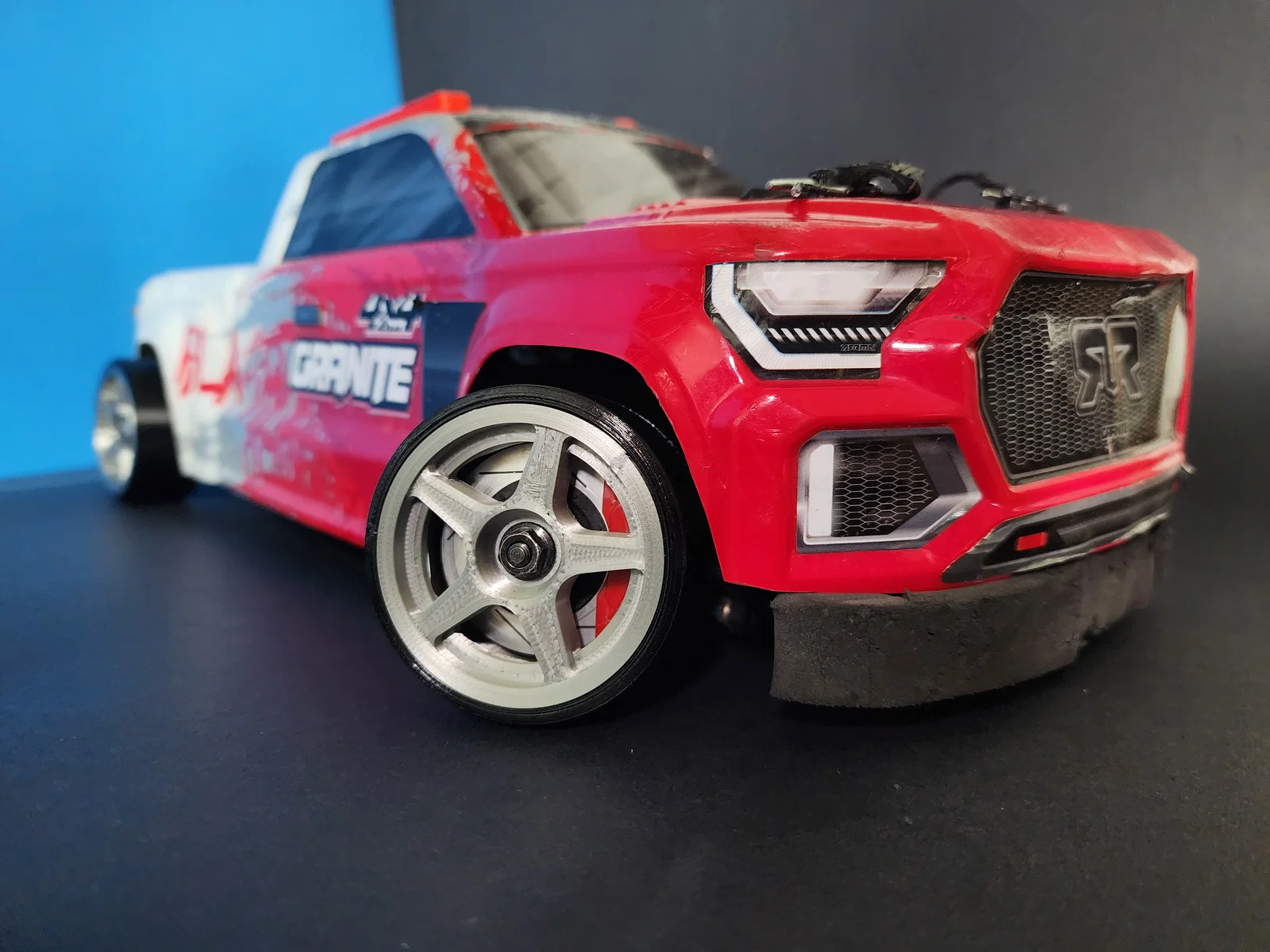 Bộ bánh xe RC drift tỉ lệ 1/10 dùng chuẩn hex 12mm, phù hợp đa số xe on road/drift. Mâm và lốp là 2 model in riêng. Có kèm lốp on road có gai; in TPU cho độ bám rất tốt. Khuyến nghị supports, ~60% infill.