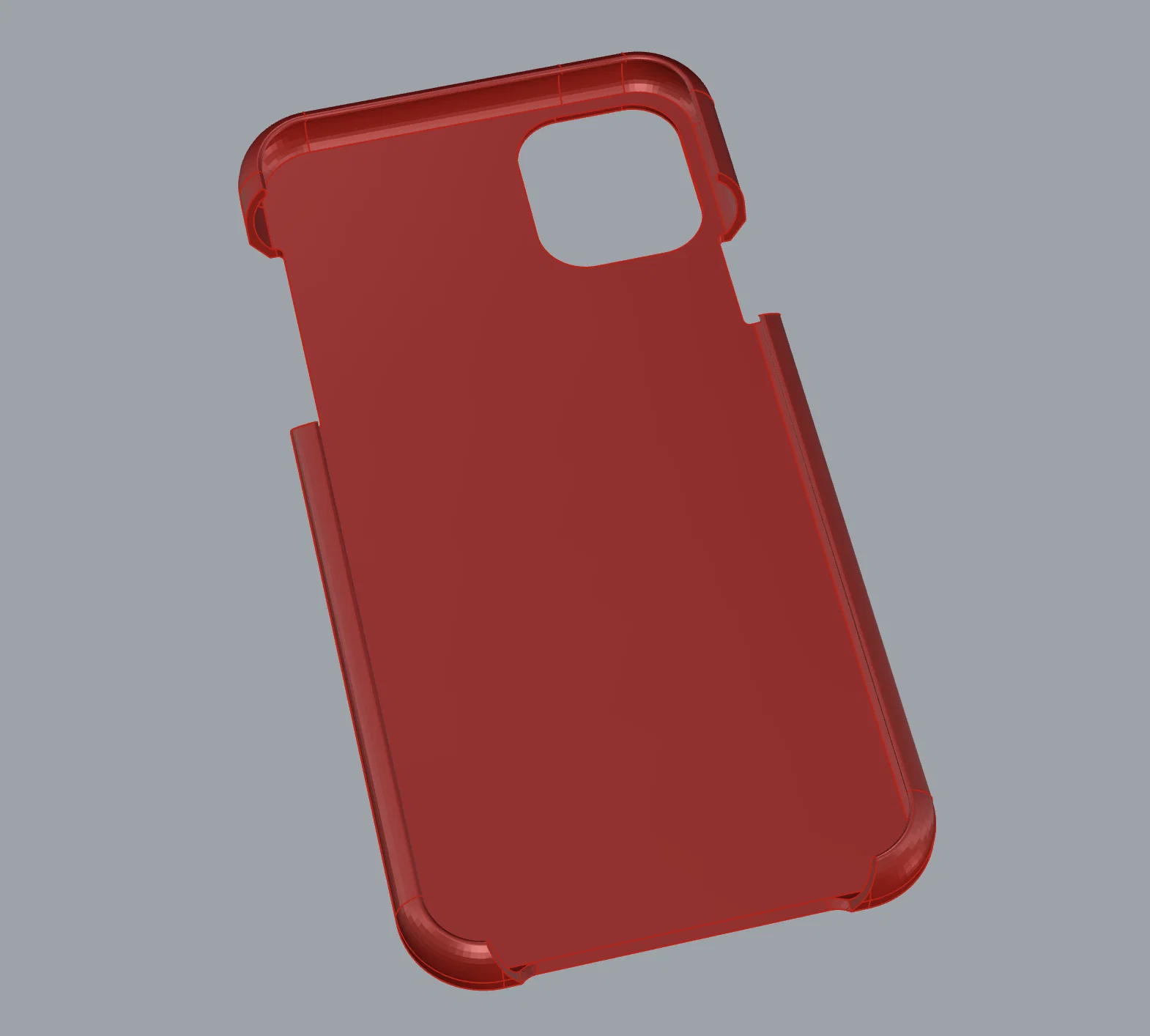 Mẫu ốp lưng iPhone 11 tự thiết kế vì khó kiếm ốp in 3D vừa khít cho PLA/PET. Tham khảo kích thước từ mẫu GrabCAD iPhone 11 thường. In bằng nozzle 0.4mm, layer 0.3mm trên Prusa MK3S+.
