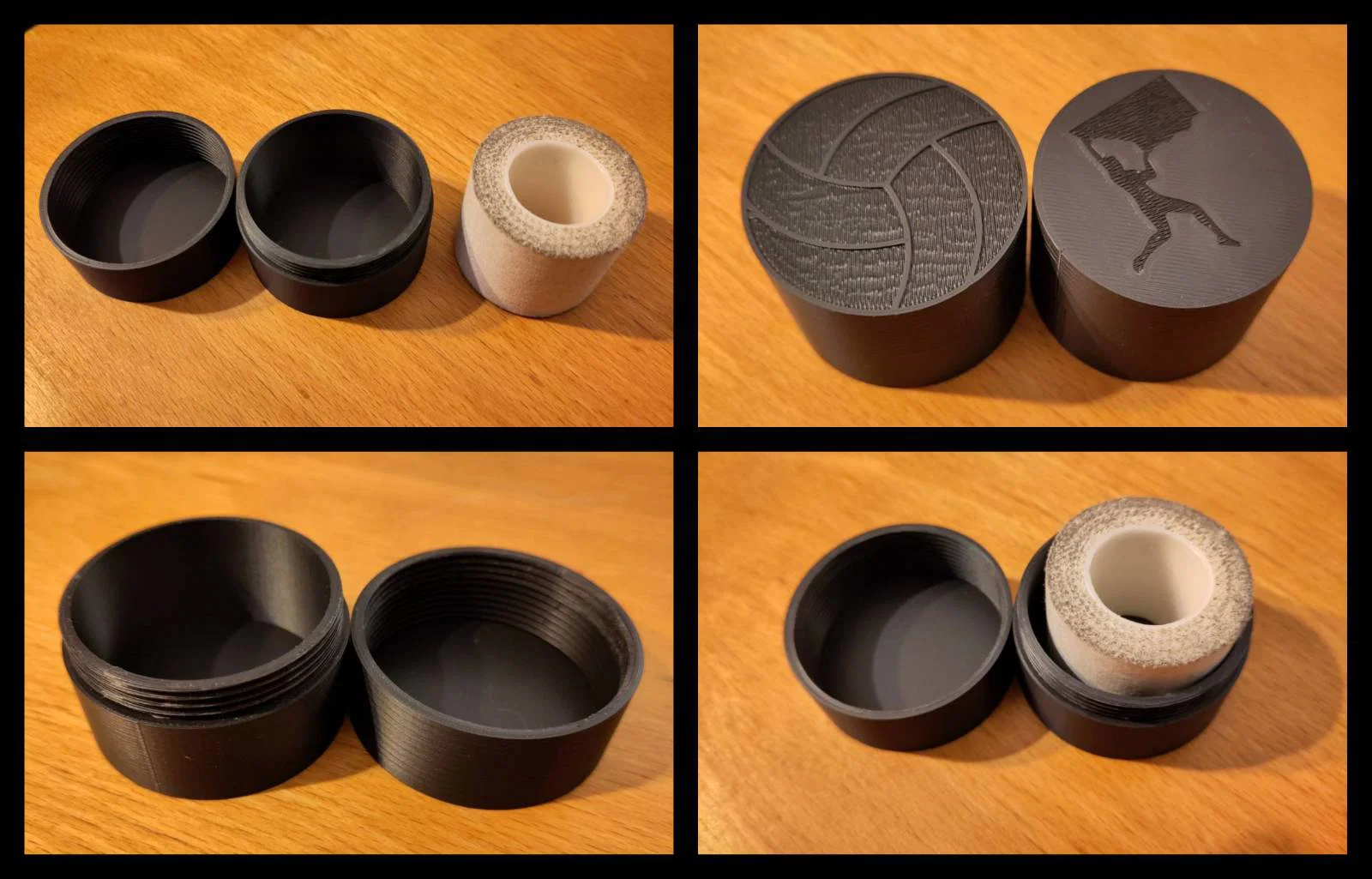 Hộp đơn giản để giữ fingertape sạch khi đi leo/thi đấu. Có 3 bản: logo bouldering, logo volleyball hoặc không logo. In PLA, ren vặn khít; chỉ cần support ở đáy (bản không logo thì khỏi).