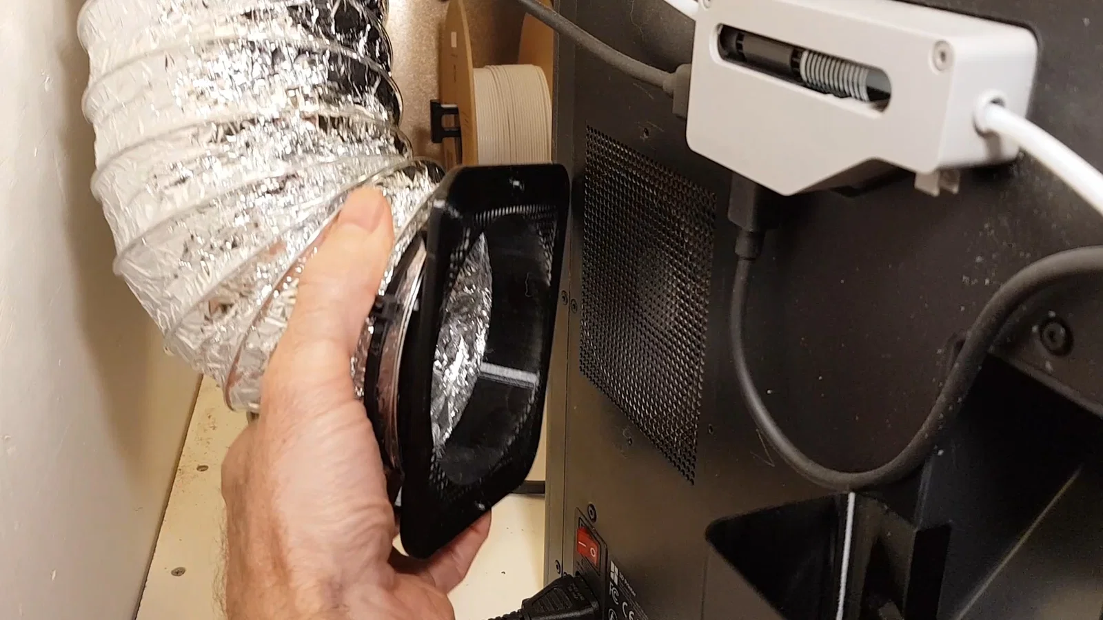 Đầu nối để gắn ống thông gió (ducted ventilation) cho enclosure của Bambulab P1S.