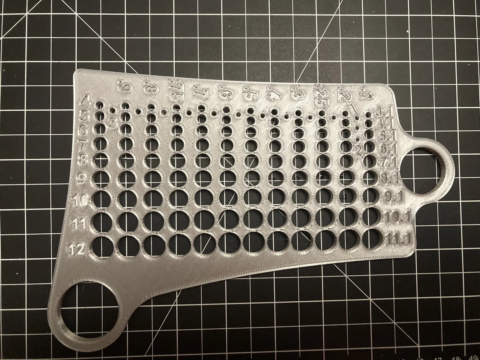 In mẫu Hole Guide 2mm–12mm để kiểm tra máy in của bạn in lỗ đường kính 2–12mm ra sao. Hữu ích khi cần canh lỗ cho friction fit, chọn cỡ vít tự taro hoặc lỗ cho vít/ty trượt xuyên qua.