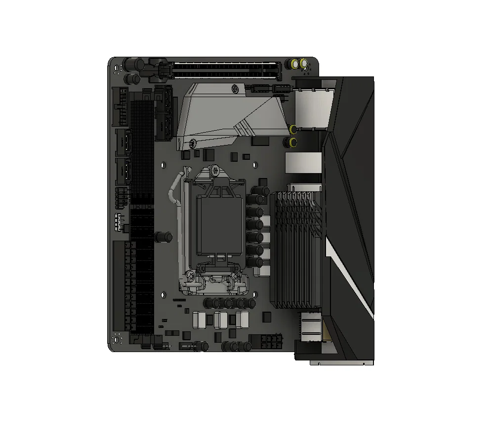 Việc sở hữu một mô hình 3D chính xác của các linh kiện phần cứng giúp người dùng hình dung rõ ràng không gian lắp đặt, đặc biệt là trong các hệ thống ITX chật hẹp nơi mỗi milimet đều quý giá. Bản thiết kế này đã được mô phỏng cẩn thận các vị trí quan trọng như cổng kết nối phía sau, khe cắm RAM, vị trí socket CPU và các khối tản nhiệt, giúp bạn dễ dàng kiểm tra độ tương thích với các thiết bị làm mát hoặc cấu hình linh kiện trước khi bắt tay vào lắp ráp thực tế.