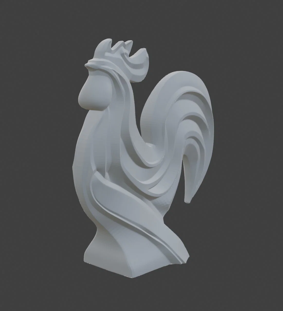 Regal Rooster là tượng gà trống 3D phong cách minimalist với đường cong mượt và dáng đứng oai vệ, làm nổi bật mào và lông đuôi. Phù hợp để 3D printing, dùng làm decor nghệ thuật cho nhiều không gian.